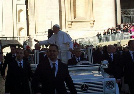 U Vatikanu je održana misa povodom početka papinske službe pape Franje. Prije mise Papa se provezao džipom Trgom sv. Petra, na kojem se okupilo više od milijun ljudi iz cijeloga svijeta. U jednom trenutku Papa je izašao iz džipa da se pozdravi s vjernicima, među kojima je pozdravio i jednu osobu u invalidskim kolicima.