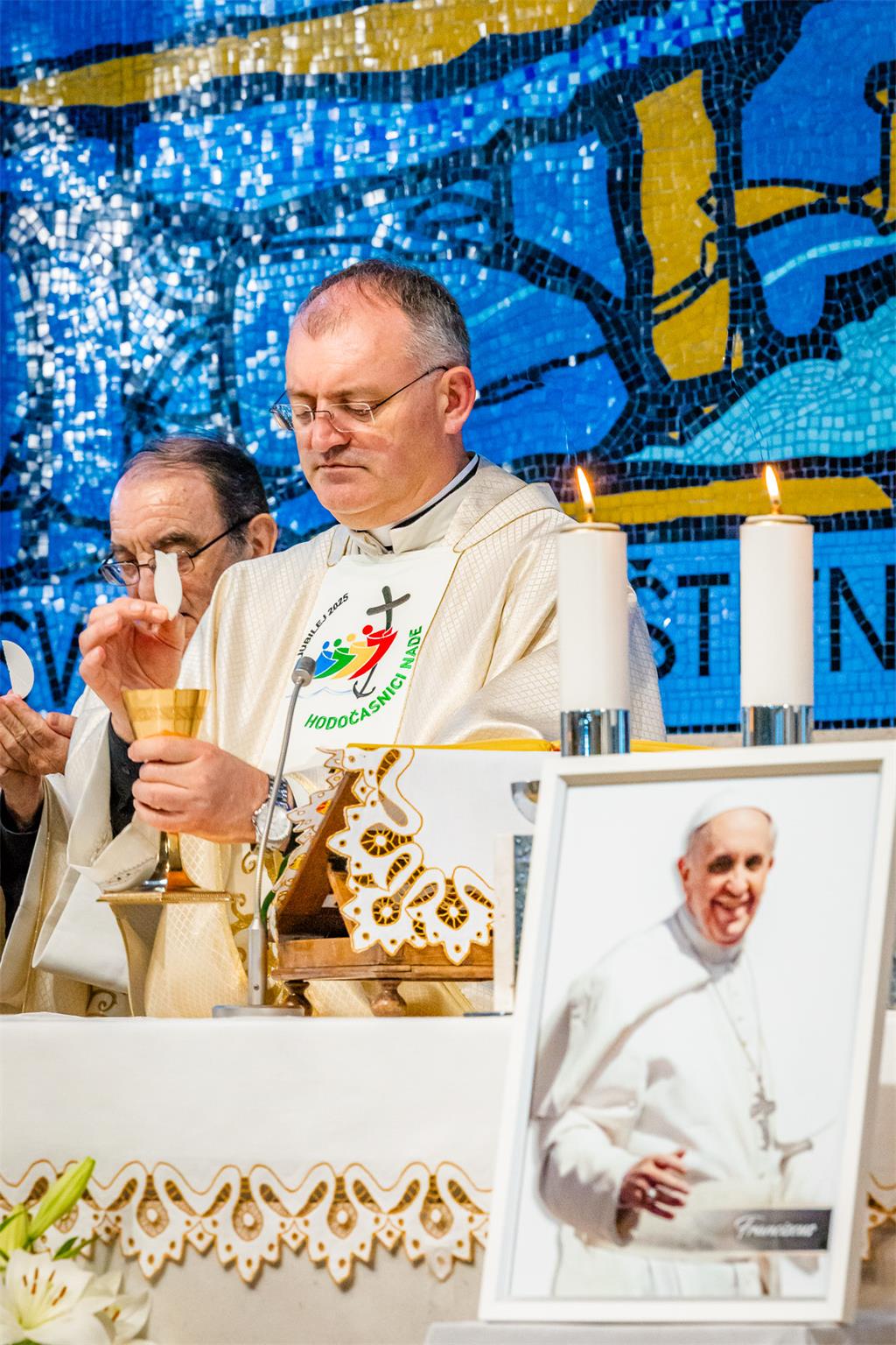 Rektor Josipa svetišta podsjetio je okupljene kako je Papa proširio "litanije svetog Josipa dodajući još sedam novih zaziva: Čuvar Otkupiteljev, Sluga Kristov, Pomoćnik spasenja, Pomoćnik u poteškoćama, Zaštitnik izbjeglica, Zaštitnik stradalih i Zaštitnik siromašnih. U vremenu pandemije Covida-19 upravo nam prezentira lik svetoga Josipa koji je u drugom, odnosno trećem planu, u kojemu prepoznaje sve one iz drugog, trećeg i inog plana, a prevažni su bili za održavanje života mnogih oboljelih, kao i života cijelog svijeta zahvaćenog pandemijom. Upravo u njima prepoznaje službu svetoga Josipa. Zatim Papino pismo Patris corde - Očevim srcem gdje u nekoliko prikladnih naziva i vrlina prezentira ljepotu Josipovog srca koji prihvaća i trudnu Mariju i njezinog sina Isusa te ga odgaja. Zbog djelovanja i života pape Franje, potvrđene mnogim komentarima cijeloga svijeta, s ponosom ističemo da smo pripadnici Crkve koju je u ime Krista ovdje na zemlji upravo on proteklih dvanaest godina vodio."