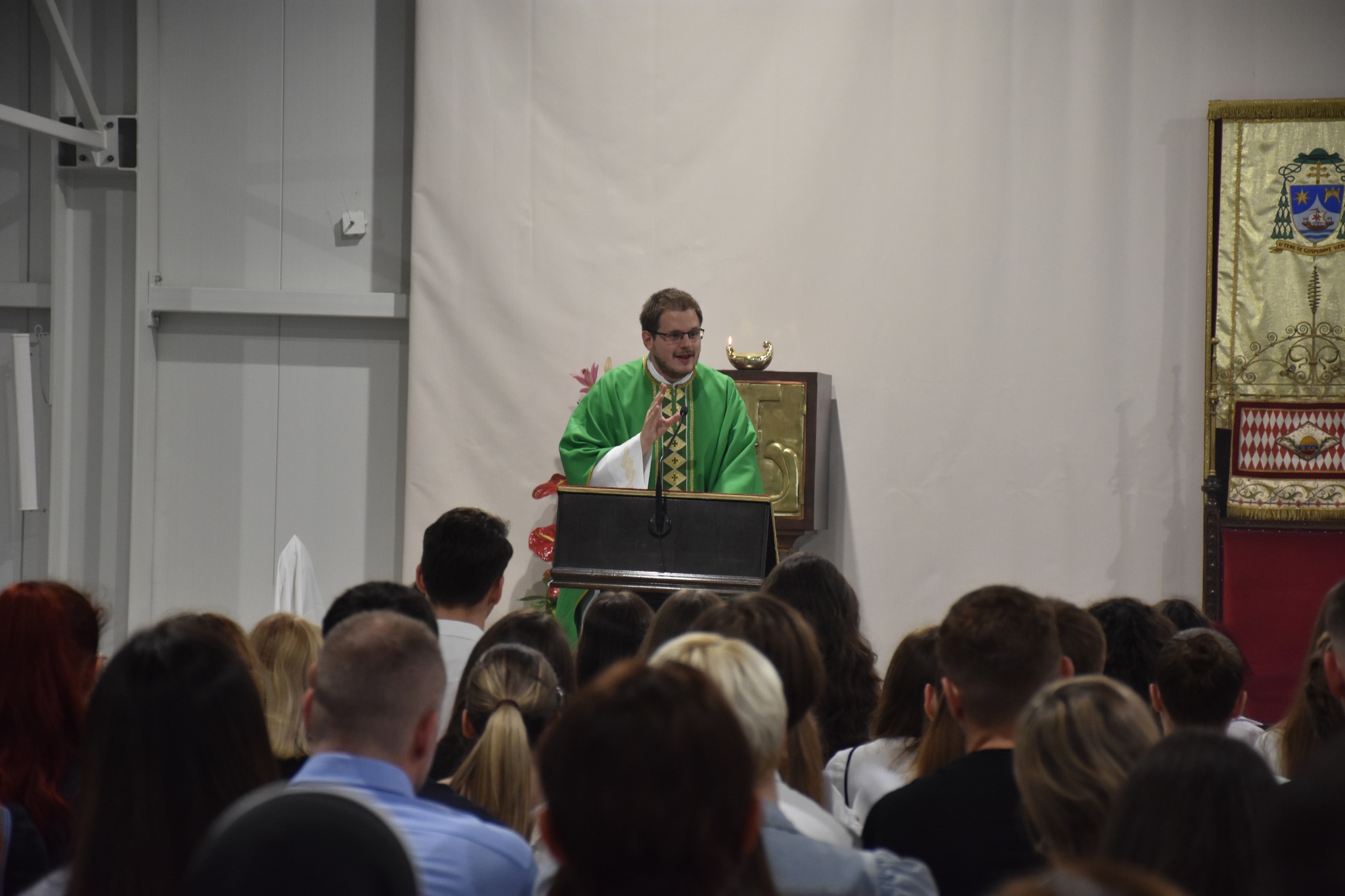 “Ono što od srca i ja želim i molim za svakoga od nas, osobito za sve vas, dragi maturanti, da nikada ne zaboravimo taj zadatak, taj poziv - poziv na ljubav. Ovaj je svijet gladan ljubavi, gladan čovjekoljublja, gladan brižnosti. To nikad nemojte zaboraviti. Molim vas, svakoga od vas, ljubite! Samo ljubite! Ljubite i nikad nećete zalutati i ovom životu. To znači biti Božji”, naglasio je, između ostaloga, propovjednik i dodao: “Biti Isusov učenik, biti kršćanin znači živjeti ono što govoriš, biti vjerodostojan svjedok, donositi svijetu ono što je više nego potrebno, ono čega je svijet gladan - dobrota, ljepota, istina i u svijetu imaju izvor u Bogu. Olako svoj život, svoje vrijeme, svoje zdravlje, svoju snagu - sebe ulažemo, dajemo krivim ciljevima, krivim vrijednostima. Toliko toga nas svakodnevno zavodi, toliko razornih elemenata prezentiraju se kao dobri i uzorni. I ako nisi kao drugi, odmah si čudan, lud ili zaostao. Ono što sam vam i sâm volio često ponavljati - ostanite originalni, ostanite Božji. Molim vas, ne bojte se ići protiv struje te pronaći ili stvoriti, u ovom užurbanom svijetu, vrijeme tišine da svaki dan zastanete i molite. Nemojte zaboraviti u životu stvoriti vrijeme za šutnju. Ali, šutnja nije za prilijepiti se za mobitel i društvene mreže. Život je konkretan, ne virtualan. Šutnja vodi molitvi, a molitva nas otvara ljubavi”.