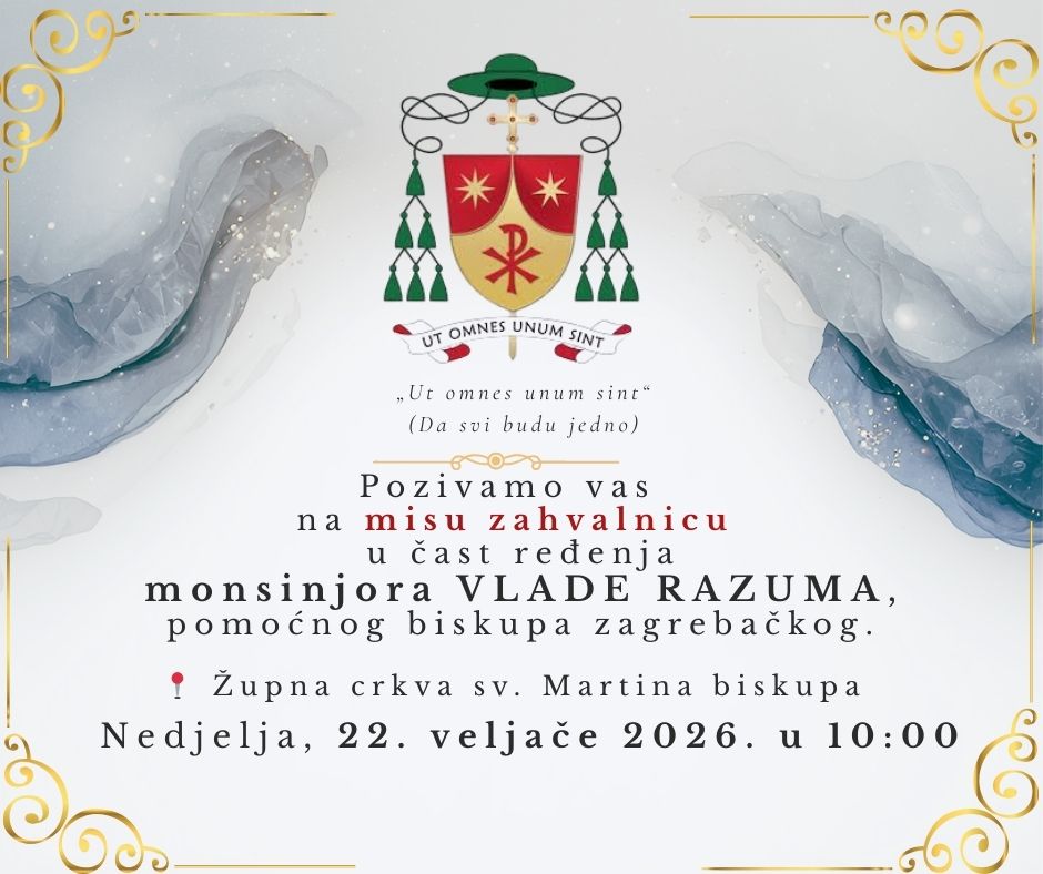 U župnoj crkvi sv. Martina biskupa u Svetom Martinu pod Okićem u nedjelju 22. veljače 2026., s početkom u 10 sati, slavit će se misa zahvalnica u povodu biskupskoga ređenja mons. Vlade Razuma, pomoćnoga biskupa zagrebačkog.