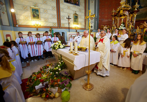 Ovogodišnji krizmanici prinijeli su na oltar plodove zemlje i rada ljudskih ruku, uz prigodne tekstove zahvale, a sudjelovali su i prvopričesnici te ostala djeca iz osnovne i srednje škole. Mons. Komorčecu u ime župe zahvalila je Višnja Borovčak, članica pastoralnog vijeća, ujedno mu čestitavši imendan uz prigodni dar.