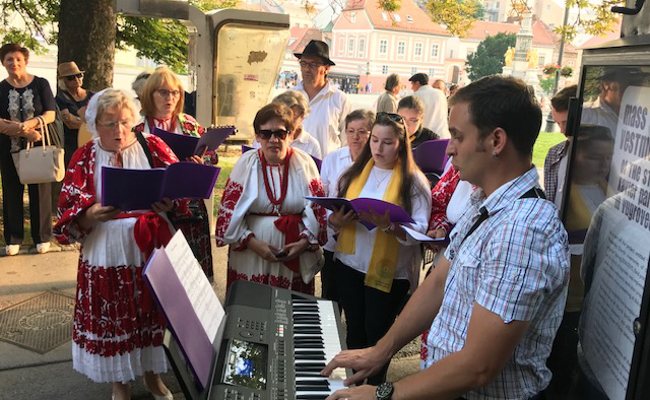 Prekrasno ljetno vrijeme omogućilo je organizatorima da se otvorenje izložbe upriliči „pod vedrim nebom“, upravo ispred ulaznih vrata u Domitrovićevu kulu, gdje je na početku programa sve nazočne pozdravio mons. Nedjeljko Pintarić, direktor Dijecezanskoga muzeja Zagrebačke nadbiskupije, a vizualnom izričaju živopisnih narodnih nošnji vugrovečkoga kraja članova Župnog zbora župe sv. Franje Ksaverskoga u Vugrovcu pojačao je vokalni doživljaj njihova skladnog pjevanja.