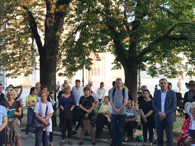 Pozdravljajući nazočne uime zagrebačkog gradonačelnika, njegov izaslanik Jurica Gregurić istaknuo je potrebu čuvanja, kako poruka ljubavi i nade koje nose izloženi eksponati, tako i samog misnog ruha, koje je rađeno kao poruka najdublje stvarnosti u liturgiji. Iz gradskih ureda bili su nazočni i Ivica Lovrić, pročelnik Gradskog ureda za obrazovanje i Ivana Mihaljinec iz Gradskog ureda za kulturu.