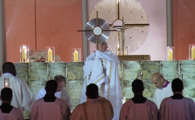 Po svršetku Papinog govora, mladi su rastavili maketu crkve, radosno odnoseći dijelove u različitim smjerovima simbolizirajući tako „izlazak iz sebe" u duhu Isusovih učenika-misonara. Potom je uslijedila procesija s Presvetim i euharistijsko klanjanje, praćeno molitvama, pjesmom i dugim trenucima šutnje uz suze mnogih sudionika. Papa je potom podijelio blagoslov te se uz pjesmu Zdravo, Kraljice zaustavio pred kipom Gospe od Aparecide. (IKA; foto: N.P. / InterMirifica.net)