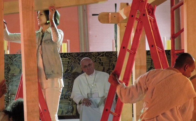 U govor o polju kao gradilištu Papa je smjestio izgradnju Crkve kao obitelji braće koja prolaze istim putem pozvavši mlade: „Nemojte se staviti na rep povijesnih zbivanja, budite protagonisti, gradite bolji svijet, svijet u kojem vlada bratstvo, svijet pravde, ljubavi, mira, solidarnosti. Idite uvijek naprijed". A kad je riječ o Isusovoj Crkvi „svatko od nas je živi kamen", koji „treba graditi jedinstvo i sigurnost Crkve, a ne graditi malenu kapelicu koja može primiti samo grupicu ljudi. Isus od nas traži da njegova Crkva bude tako velika da može primiti čitavo čovječanstvo, da bude kuća za sve! Kaže meni, vama, svakome: 'Pođite i učinite mojim učenicima sve narode'. Večeras mu odgovorimo: Da, Gospodine, i ja želim biti živi kamen; zajedno želimo graditi Isusovu Crkvu! Želim poći i biti graditelj Kristove Crkve!
