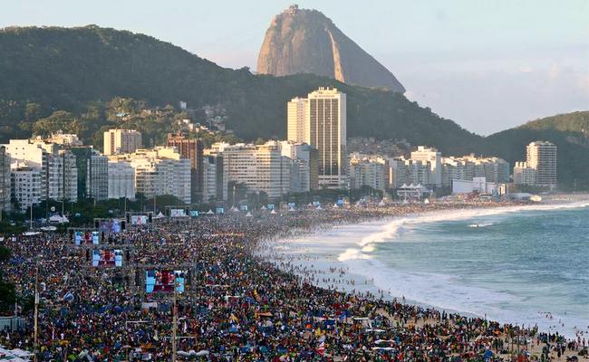 Više od dva milijuna mladih okupilo se 27. srpnja navečer s papom Franjom na molitvenom bdjenju na Copacabani, gdje će mladi provesti i noć u iščekivanju završne Mise 28. Svjetskog dana mladih. Vožnju Pape kroz Atlantsku aveniju do plaže Copacabana mladi su pratili povicima „Esta es la juventud del Papa" (Ovo je Papina mladež). U središtu prvog dijela dvosatnog programa bila je scenografija u kojoj su mladi po primjeru sv. Franje uprizorili gradnju jedne crkve, a sve to isprepleteno svjedočanstvima četvero mladih.