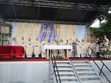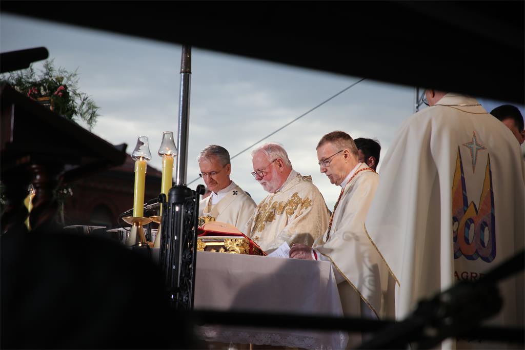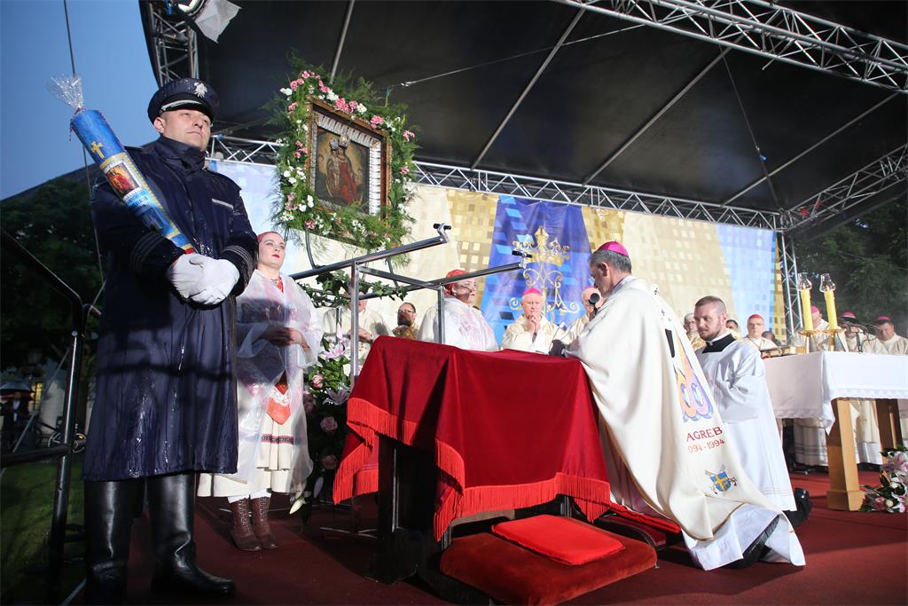 Veliča. Zatim je zagrebački nadbiskup mons. Dražen Kutleša s okupljenim (nad)biskupima i vjernicima izmolio molitvu Majci Božjoj od Kamenitih vrata želeći obuhvatiti sve zahvale, primljene milosti tijekom godine, sve nakane, moleći osobito za sve ljude u potrebi da bi ojačani Majčinim zagovorom i blizinom mogli svakome čovjeku donositi utjehu i sami biti dio onih vrata kroz koja dopire sjaj Nebeske ljepote i kroz koja je već na Zemlji vidljiva vječnost.