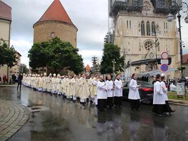 Liturgijsko pjevanje predvodili su Koralisti zagrebačke katedrale pod ravnanjem mo. Miroslava Martinjaka, uz orguljsku pratnju prof. Nevena Kraljevića i Brass kvinteta studenata Muzičke akademije.