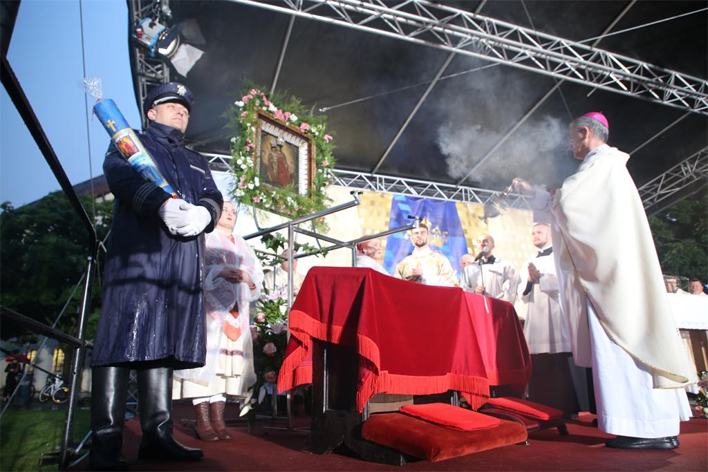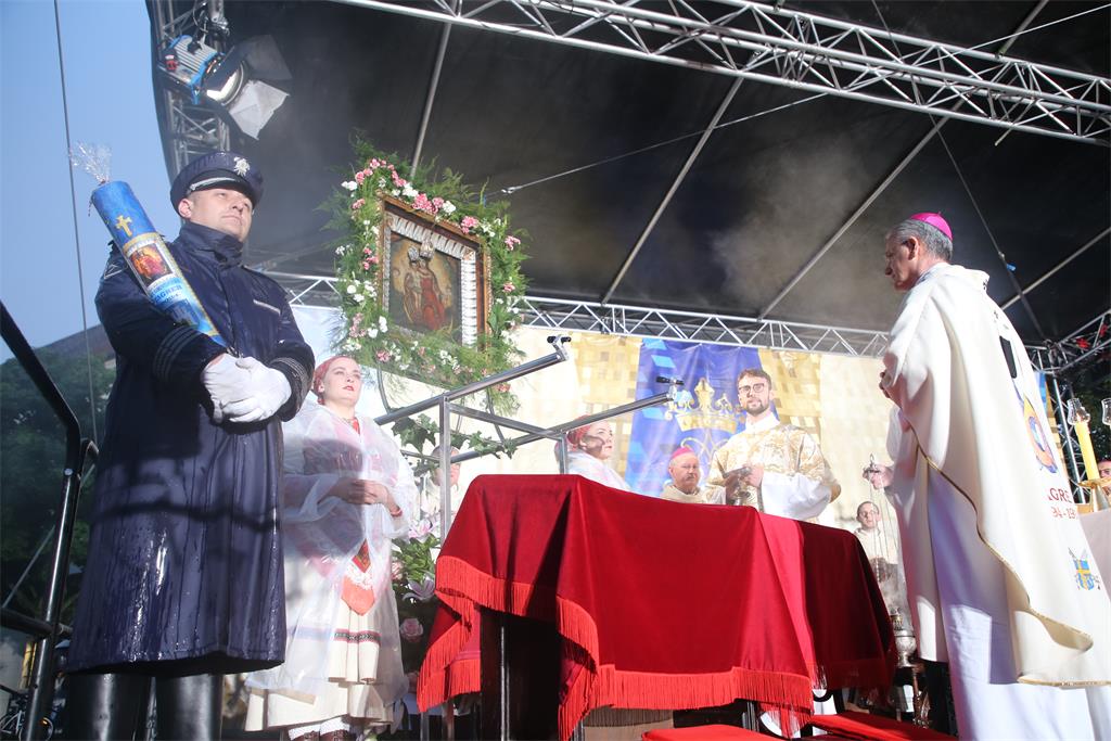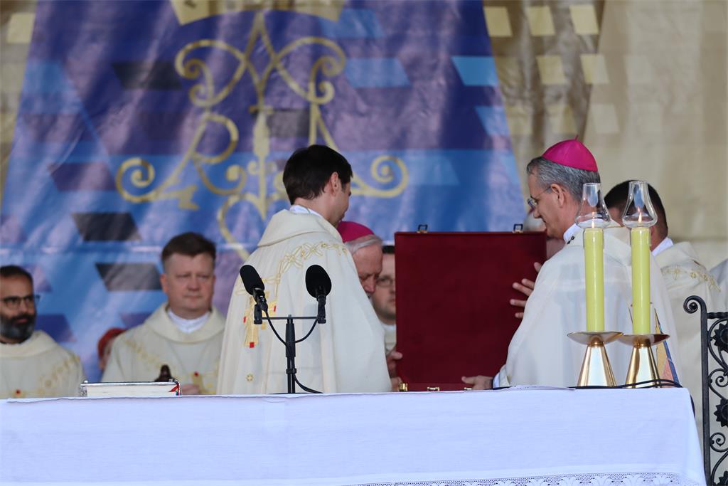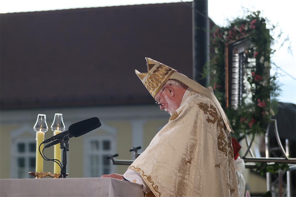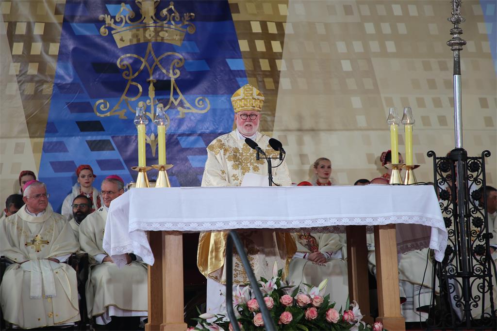 Pozdravio je predvoditelja slavlja mons. Gallaghera, kojem je u ime nazočnih biskupa, svećenika, đakona i Bogu posvećenih osoba te svega Božjeg naroda okupljenog na ovom slavlju darovan lik Majke Božje od Kamenitih vrata.