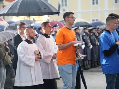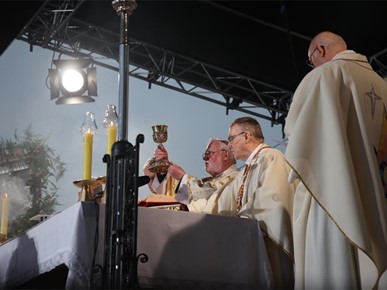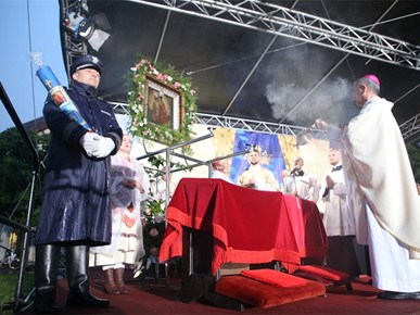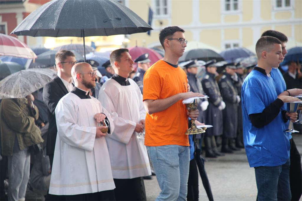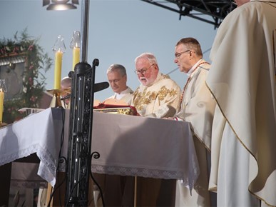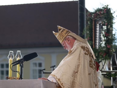 Na početku misnoga slavlja okupljene je pozdravio zagrebački nadbiskup Dražen Kutleša kazavši kako "pred zavjetnom slikom Majke Božje od Kamenitih vrata molili smo i molimo, javno i privatno, zajedno i pojedinačno, za sve naše potrebe. Majka Božja, vladarica sa žezlom u lijevoj ruci i s Malim Isusom u desnoj, trajni je podsjetnik da nas Bog ne napušta ni u najljućim nevoljama. No, značenje te zavjetne slike koje bih u ovoj prigodi htio istaknuti tiče se majčinstva. Bogočovjek Isus Krist, vladar svijeta i naših života, trebao je majku. Time je majčinstvo, kako tjelesno tako i duhovno, uzdignuto na razinu koju ništa drugo u životu žene ne može doseći. Učimo se i mi, poput našega Gospodina, prepuštati nježnoj skrbi Blažene Djevice Marije, Gospe od Kamenitih vrata."