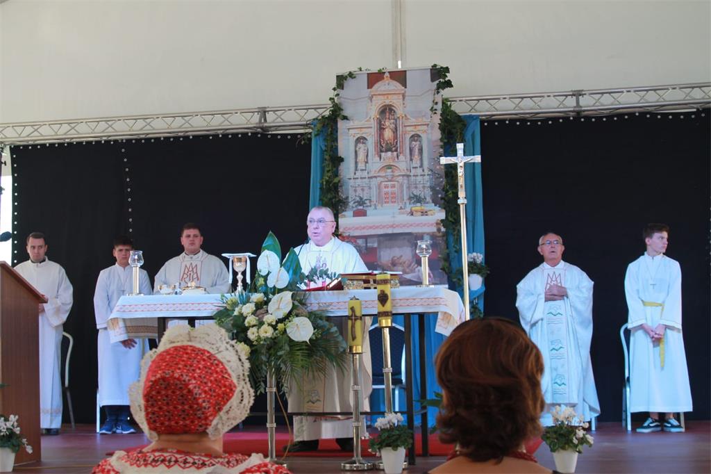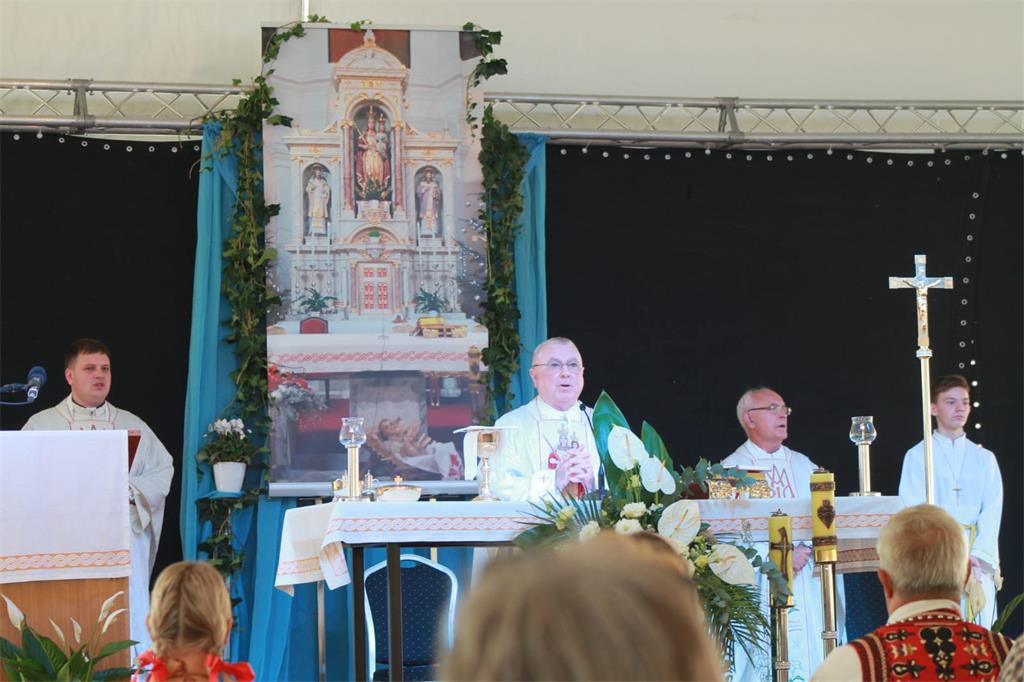 U nedjelju je svetu misu zornicu u 6 sati predvodio domaći župnik vlč. Marko Torbar, u 9 sati p. Mislav Skelin, župni vikar iz Župe Jordanovac, dok je posebno svečano misno slavlje bilo ono u 11 sati na kojem je mons. dr. Juraj Batelja u svojoj homiliji najveći naglasak stavio na važnost i položaj žena i majki u društvu, kazavši da se po tome vidi kakvo je društvo u cjelini. „Majka je prva učiteljica u vjeri, a sotonske sile ne podnose plodnost materinstva. Moramo znati čitati znakove vremena, a kršćani se posebno moraju izboriti za status u društvu. Ne mogu samo gledati i dozvoljavati da drugi rovare i uništavaju njihovu svetinju, kao što 'kotači prelaze preko kamenja na cesti', kako stoji u zapisu Marije Jurić Zagorke. Kršćani ne vitlaju mačem, već je njihovo najveće oružje Božja ljubav u srcu, ljubav za bližnjega. Što bismo bili bez Boga? Zahvalite Mu što nas sabire kao braću i sestre!“. Gledajući ranjenu crkvu, zaključio je misno slavlje riječima: „Ne dao Bog da se pukotine sa zidova presele u ljudska srca“.