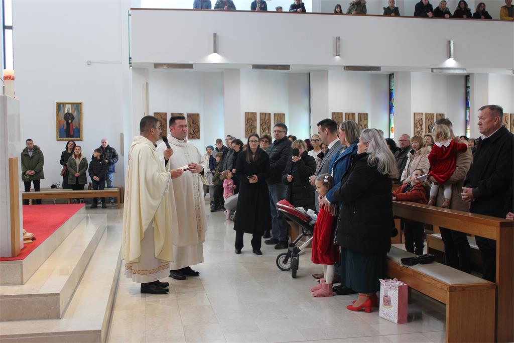 Na završetku misnog slavlja pozdravljajući mons. Subotičanca i ujedno mu zahvaljujući što je u ime zagrebačkog nadbiskupa mons. Dražena Kutleše došao u Župu sv. Luke u Travnom krstiti peto dijete obitelji Kuk, upravitelj župe vlč. Darko Bručić Pavuk čestitao je roditeljima i kumovima male Emanuele, njenoj braći Jurju i Josipu te sestrama Ružici i Tereziji, istaknuvši kako je ovo drugo krštenje petoga djeteta u župi te izražavajući radost što je u župi Travno sve više obitelji otvorenih životu. Mons. Subotičanec u ime Zagrebačke nadbiskupije uručio je obitelji Kuk prigodan dar.