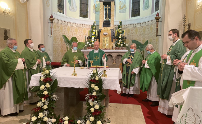 Povezani smo s Kristom u patnjama, da bismo bili dionici i njegove proslave. Zato nas u potpunosti tješi apostolova riječ: U svemu pritisnuti, ali ne pritiješnjeni; dvoumeći, ali ne zdvajajući; progonjeni, ali ne napušteni; obarani, ali ne oboreni – uvijek umiranje Isusovo u tijelu pronosimo da se i život Isusov u tijelu našem očituje, rkoa je propovjednik i poručio: „Zato u svojim nevoljama ne malakšimo, nego ih s pouzdanjem podnosimo. Tako onda naviještamo evanđelje – radosnu vijest spasenja. Naš život onda nije muka, patnja, nego je naš život hod s Kristom – zajedno s njime trpimo, da bismo s njime u konačnici i kraljevali“.