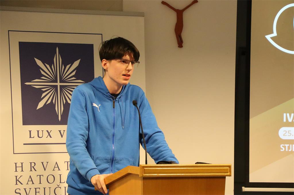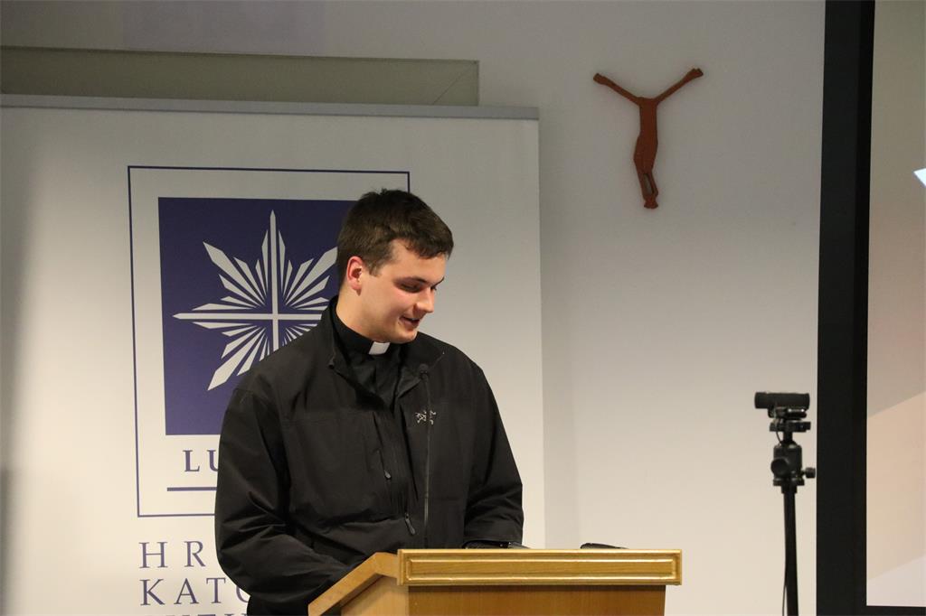 Nakon izlaganja, uslijedili su interventi dvojice sudionika: Luke Marasa, bogoslova Zagrebačke nadbiskupije, i Filipa Krznara, učenika XV. gimnazije.