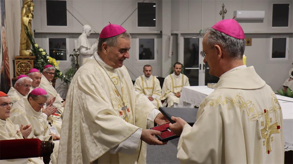 Na kraju misnoga slavlja, predsjednik HBK zagrebački nadbiskup Dražen Kutleša nunciju je, u ime svih hrvatskih biskupa, darovao srebrni križ i prsten ukrašen hrvatskim pleterom. Kako je rekao, “križ simbolizira snagu vjere i poziva na svetost. Prsten je znak Vaše apostolske službe, ali i povezanosti s Crkvom, a motiv pletera utkan je u kulturu i baštinu našega hrvatskog naroda. Neka taj simbol i Vama bude stvarni podsjetnik na jedinstvo, snagu i vjernost koju je naš hrvatski narod crpio iz vjere.”