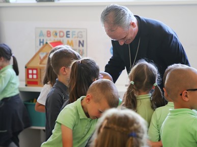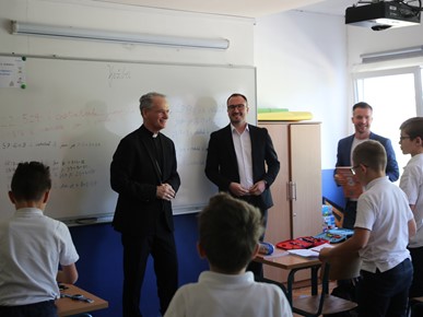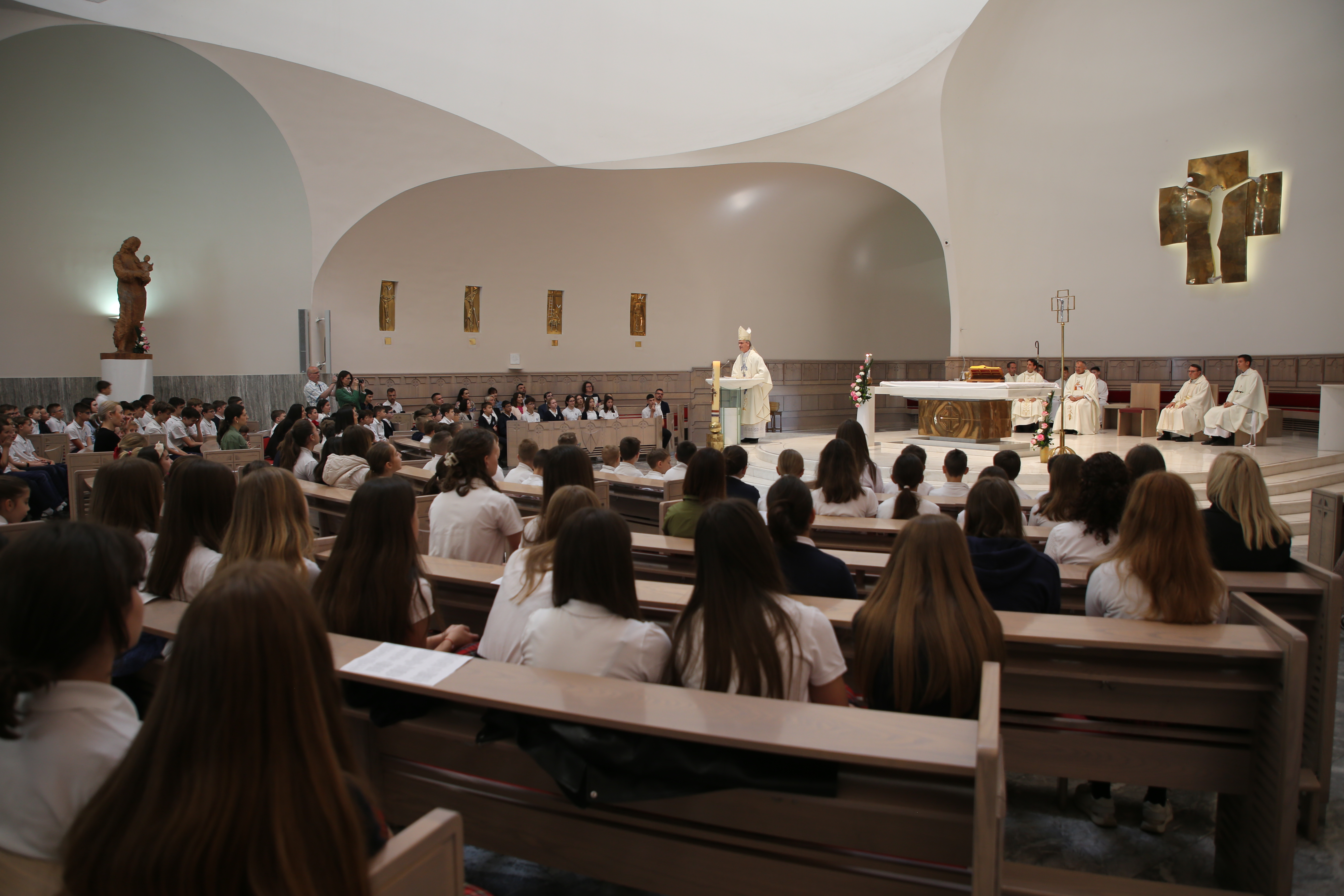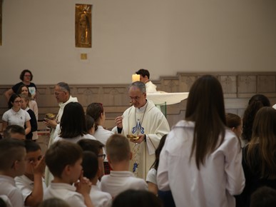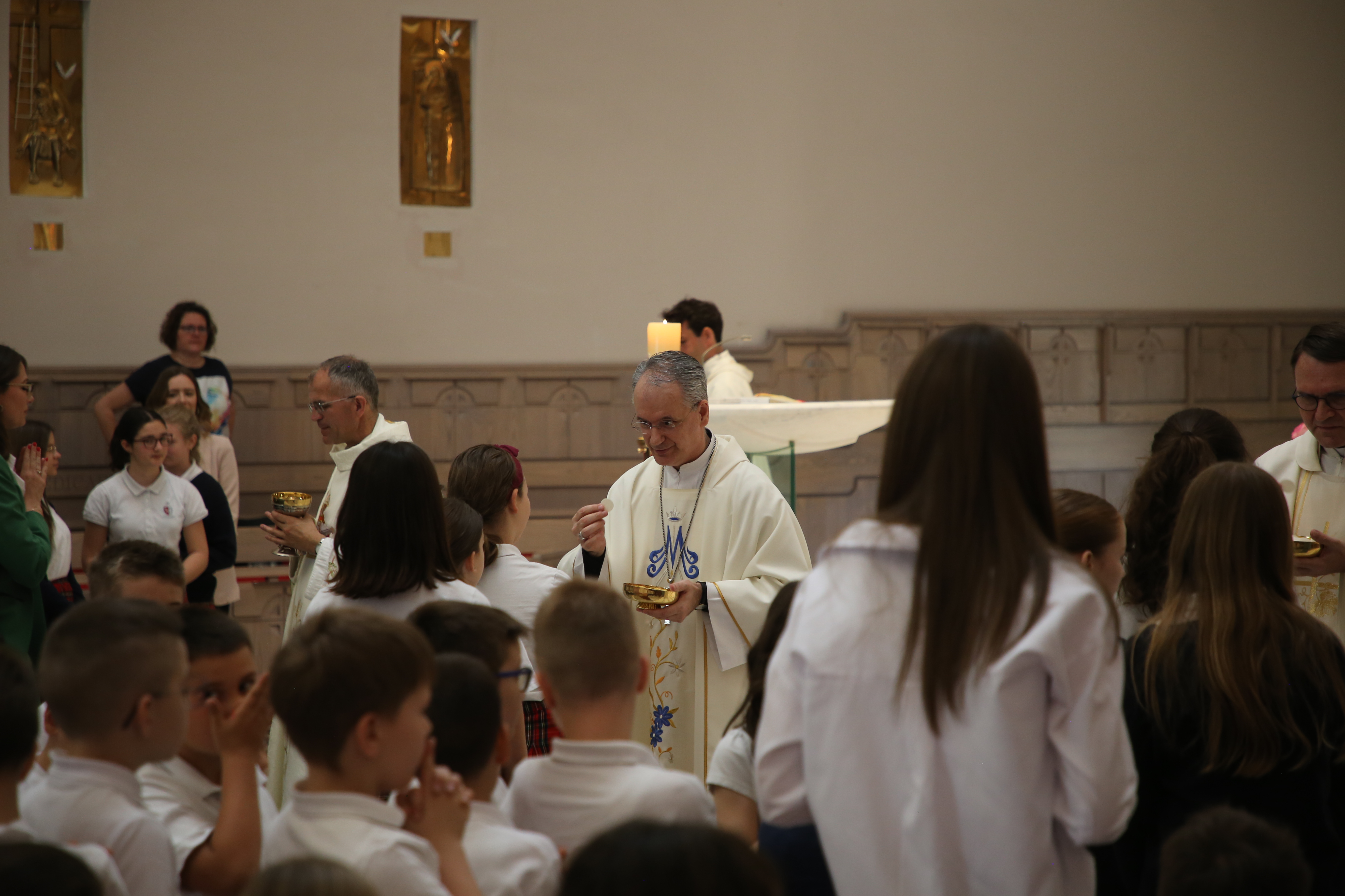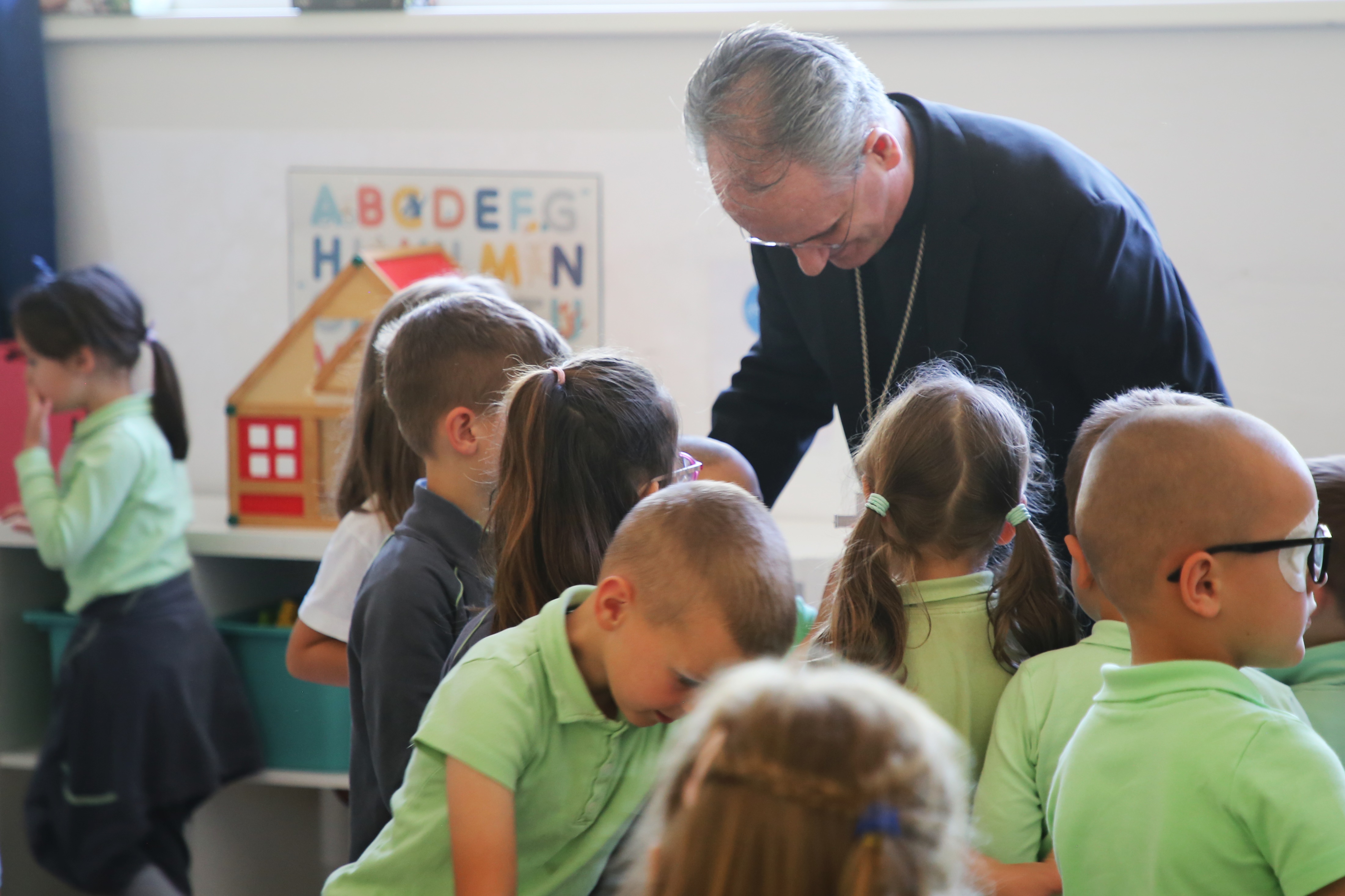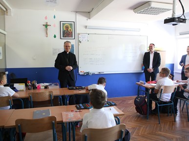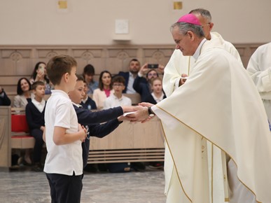 Nadbiskup se susreo s vrtićancima, prvopričesnicima (učenicama i učenicima trećeg razreda) te djelatnicima školâ.