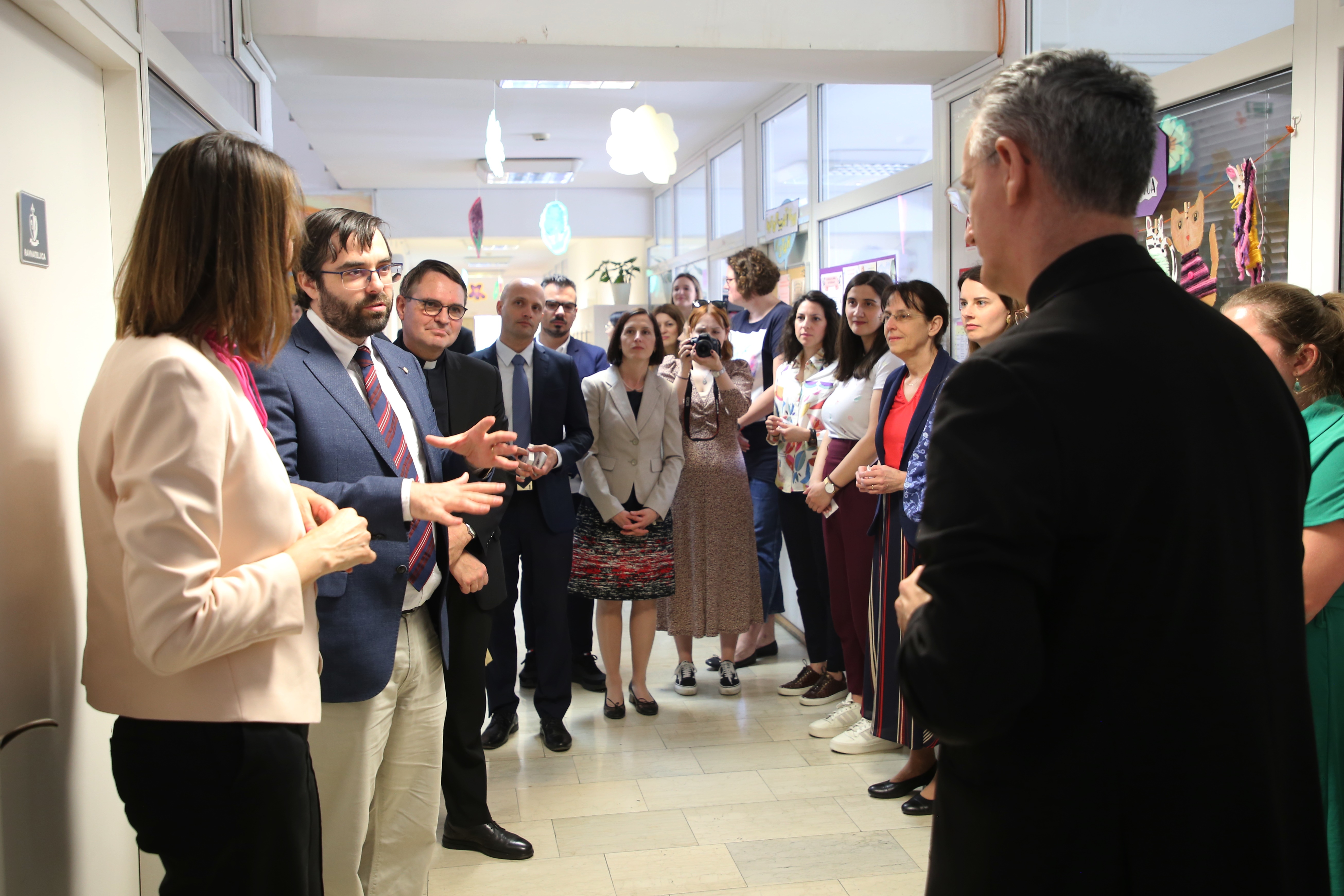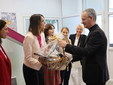 Nakon misnoga slavlja nadbiskup Kutleša obišao je prostore Dječjeg vrtića Ružičnjak - Klinci Rinci te prostore OŠ Lotrščak i OŠ Ružičnjak, u pratnji v.d. ravnateljice vrtića Maje Kraljević te ravnatelja školâ Anite Vuković (OŠ Ružičnjak) i Marina Divića (OŠ Lotrščak). Susretu i obilasku prisustvovali su i ravnateljica RINO instituta dr. sc. Lucija Murgić, tajnik Instituta Ángel González de Rábago, školski kapelani vlč. Josep Peguera Poch i vlč. Iñigo Cortes Elorza te povjerenik za katoličke škole i predškolske ustanove na području Zagrebačke nadbiskupije Tomislav Buntak.