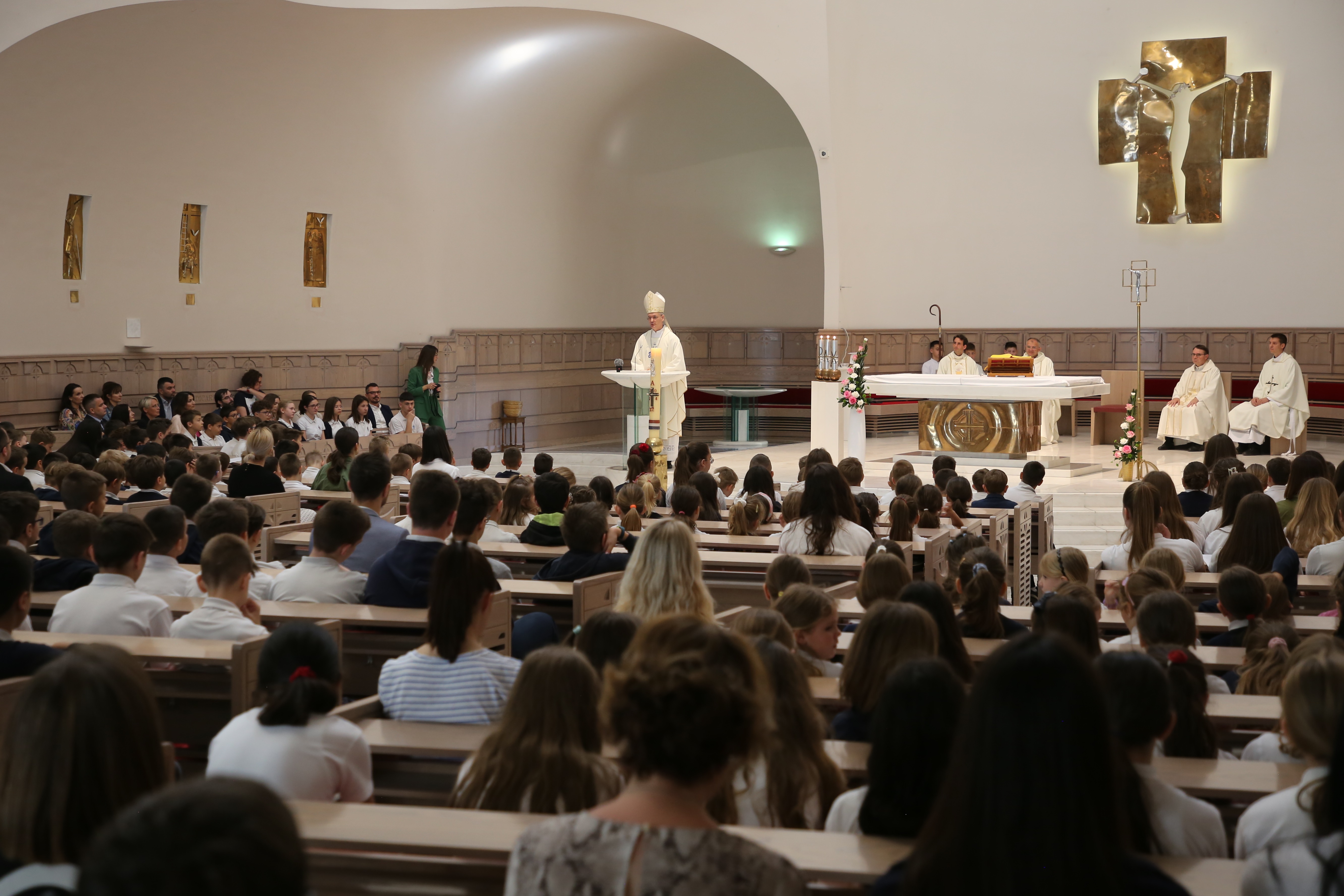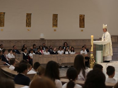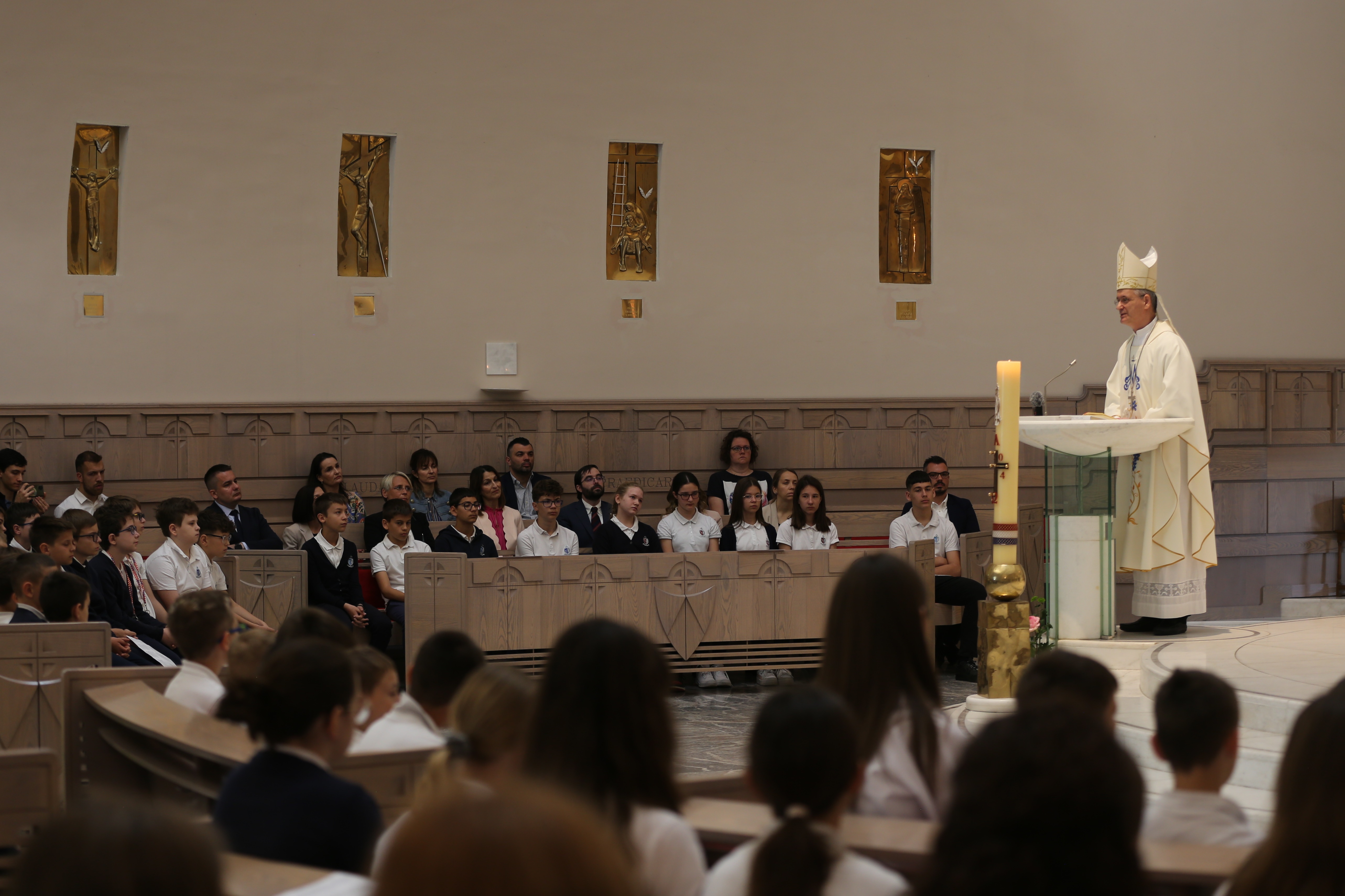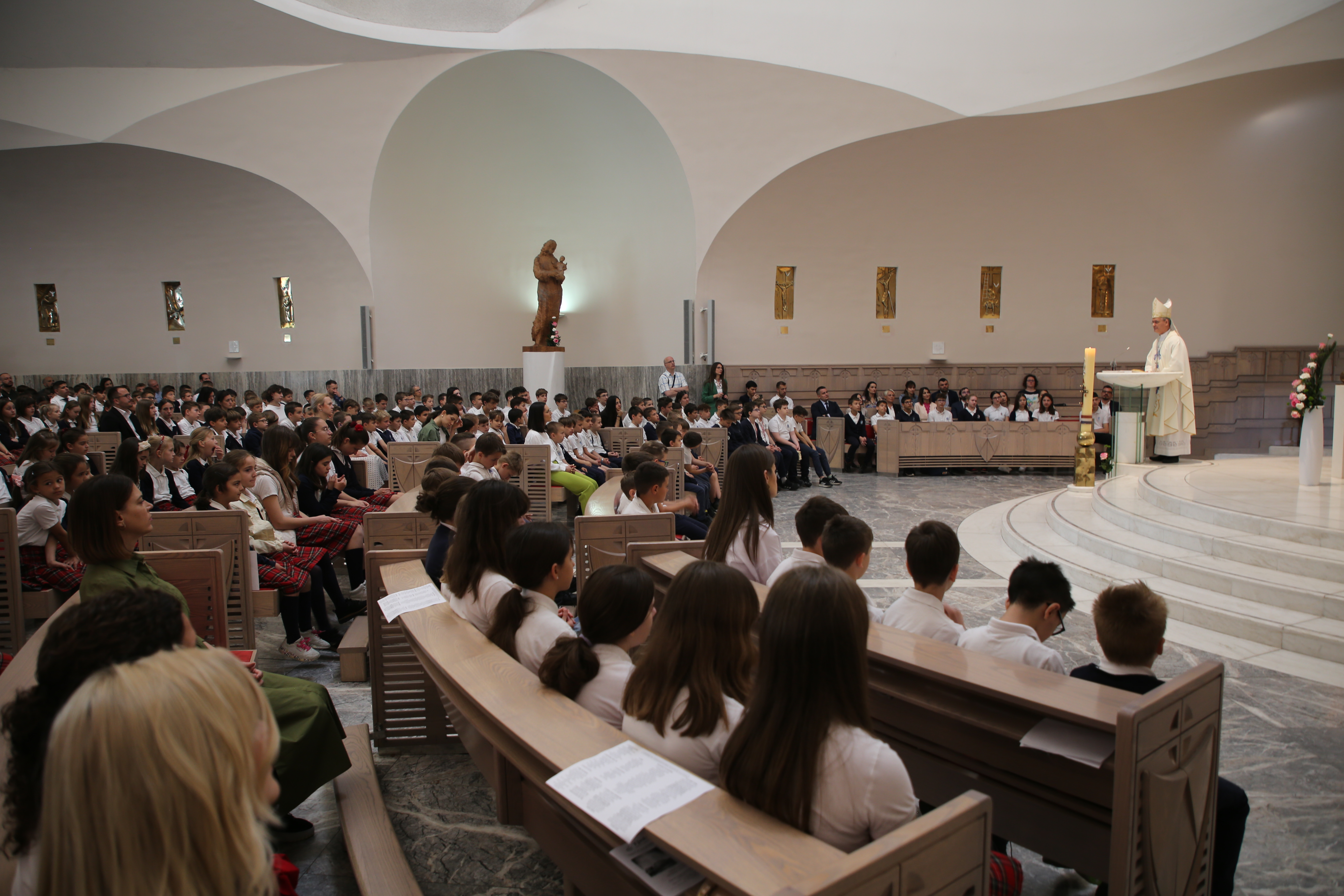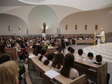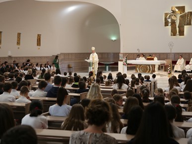 Roditeljima i djeci poručio je kako smo okruženi „mnoštvom propadljivih stvari, stvari koje imaju rok trajanja i koje nam služe da zadovoljimo svoje potrebe: za hranom, za odjećom, za statusom, zabavom, igrom… Ako ne budemo oprezni, one nas mogu zarobiti i pokvariti naš okus na način da nećemo osjećati potrebu za Bogom ni za onim zbog čega nas je stvorio, a to je naša vječna sreća u zajedništvu s njime.“