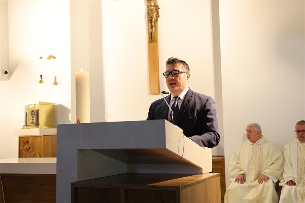 Budi hrabar i pokaži se čovjeku i uspjet ćeš u svemu što naumiš te poručio da su upravo te riječi vodile njega i cijelu župnu zajednicu u ovom ostvarenju. Zahvalio je svim svećenicima koji su bili na službi u ovoj župi kao i subraći u dekanatu. Na kraju je posebno zahvalio nadbiskupu Kutleši na dolasku i upućenim riječima ohrabrenja, a potom je uime župne zajednice Nadbiskupu uručen prigodni dar.