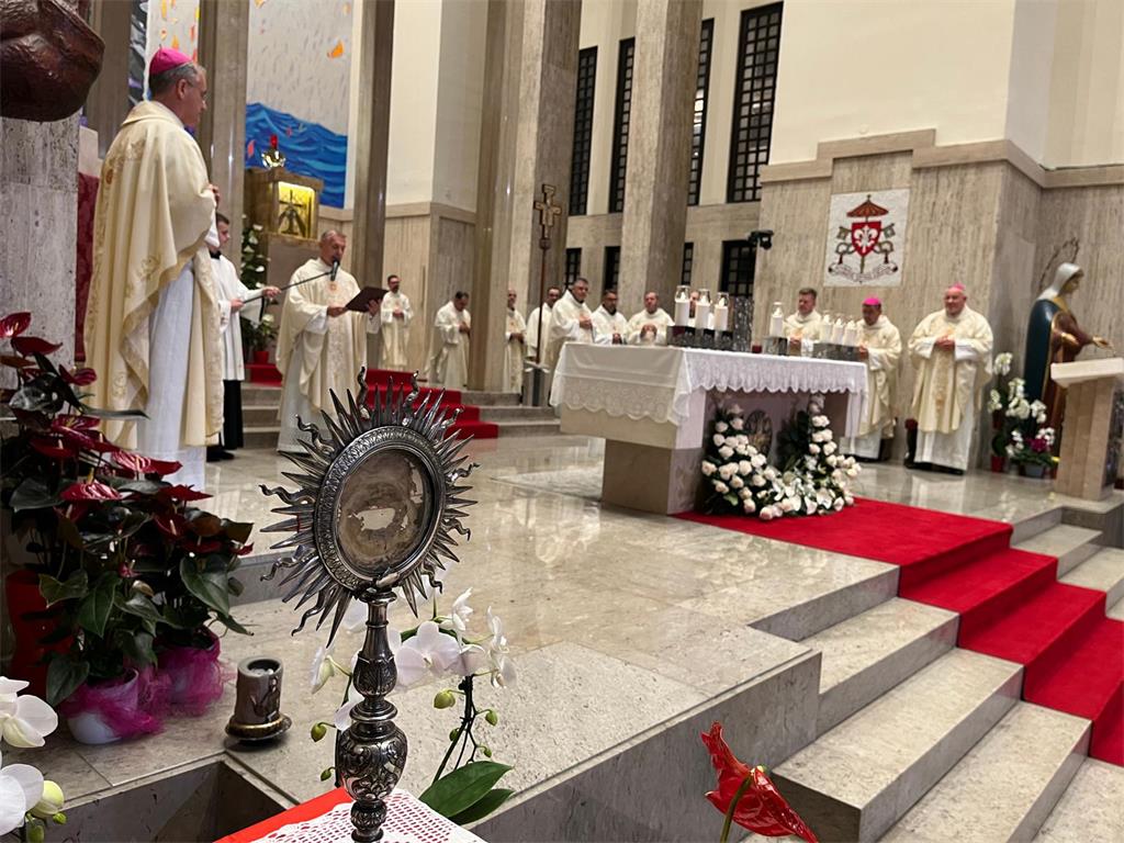 na početku homilije rekao da je zahvalan i radostan što ima čast predvoditi euharistijsko slavlje na koje ih je okupilo obilježavanje osamstote obljetnice od kada je sveti Franjo primio stigme. „Vjerujem da je vaša prisutnost ovdje motivirana ponajprije životom svetoga Franje, njegovom silnom ljubavlju prema Isusu, kao i živom željom da iskusite pomoć njegova zagovora. Sveti Franjo bio je izniman Kristov nasljedovatelj i štovatelj njegove muke, toliko da je i na svom tijelu zaslužio nositi znakove unutarnjeg jedinstva s Kristom. Stoga, ni nakon 800 godina, ovaj Svetac ne prestaje privlačiti vjernike, a intrigira i one koji su se udaljili od vjere ili je nikada nisu upoznali“, poručio je te dodao da će se nadahnuti na trima temama iz bogatstva života sv. Franje: zahvalnosti, pokori i mirotvorstvu.