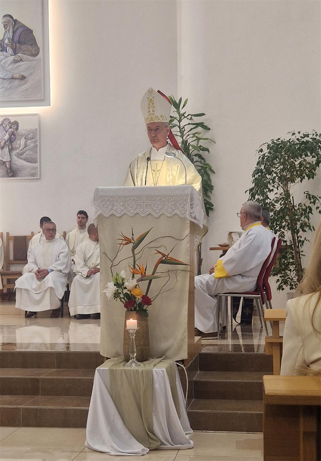 Nadbiskup je poručio kako smo pozvani "živjeti u Crkvi i osjećati s Crkvom svjesni Kristove prisutnosti među nama: u svetoj misi, u zajedničkoj molitvi, u brizi za siromašne, u katehezi, u sakramentima, posebno ispovijedi i pričesti, u zajedničkoj kršćanskoj borbi protiv duhovne hladnoće, ravnodušnosti i grijeha. Vaš sveti zaštitnik Leopold više je govorio životom negoli riječima. Živio je život žrtve i ljubavi, poput ovce koja poznaje glas Pastira i poput pastira koji ljubi svaku ovcu. U njegovu su glasu mnogi prepoznali Isusa i vratili se vjeri i životu milosti. Molimo danas da i mi postanemo narod koji poznaje Kristov glas, koji širi milosrđe i koji živi vjerno u zajedništvu Crkve. Neka sveti Leopold zagovara ovu župu, neka ova crkva bude kuća Dobroga Pastira i neka svaki naš dan bude jedan korak bliže vječnosti gdje ćemo s nepomućenom radošću govoriti: „Gospodin je pastir moj, ni u čem ja ne oskudijevam.“"