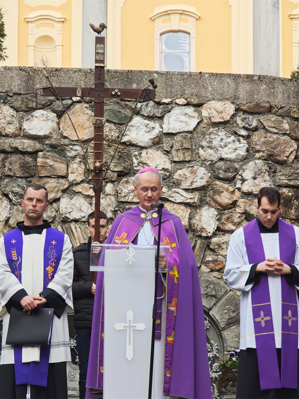 nadbiskup Kutleša uputio je vjernicima nagovor u kojem je pozvao vjernike da u sjeni križa koji "govori više od svake riječi" ne traže samo sjećanje na bol, nego ponajprije utjehu i nadu.