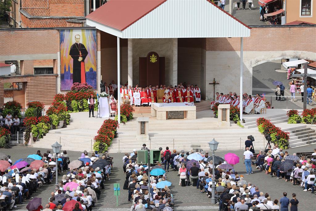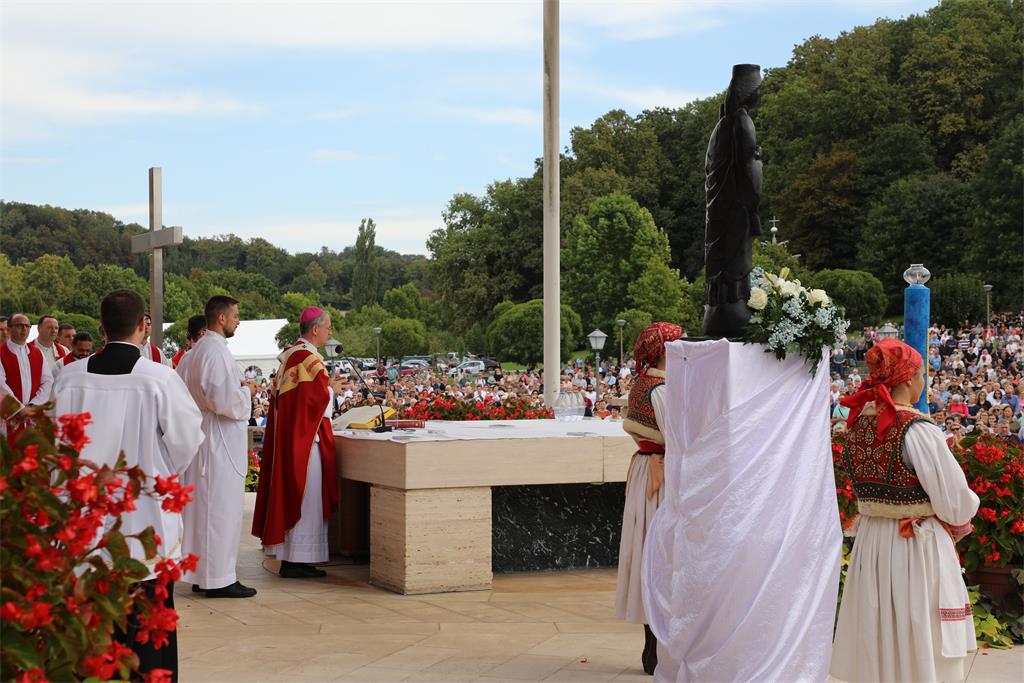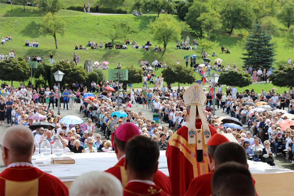 Istaknuo je da je znakovito "i to da naše zavjetno hodočašće pada na dan kada Crkva slavi blagdan Uzvišenja svetoga Križa. Na Križu je Sin Božji proslavljen jer je ostao Ocu poslušan do kraja. Pod Križem je Majka ostala vjerna jer je u tami sačuvala nadu. Stoga su Križ i Majka nerazdvojivo povezani. Križ nam pokazuje visinu Božje ljubavi, a Marija dubinu nade koja nikada ne razočarava. Zato i naš dolazak ovamo nije samo izraz pobožnog običaja, nego čvrstog uvjerenja da pred Marijinim likom možemo pronaći novu snagu; da u njezinoj majčinskoj blizini možemo otkriti smisao u svojim tamnim trenucima; da nam ona može pomoći pretvoriti naše tjeskobe u povjerenje, a naše slabosti u hod prema Kristu."