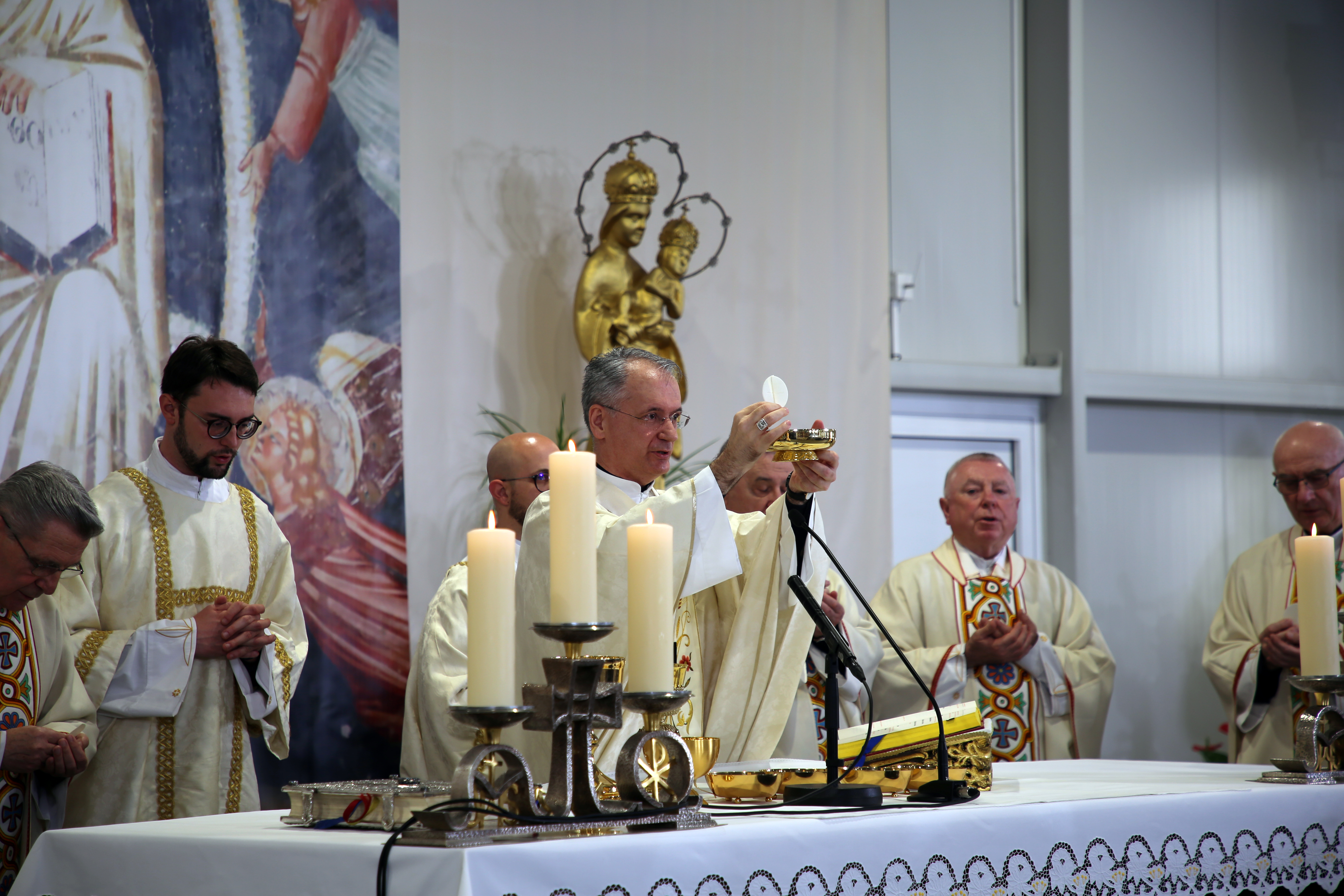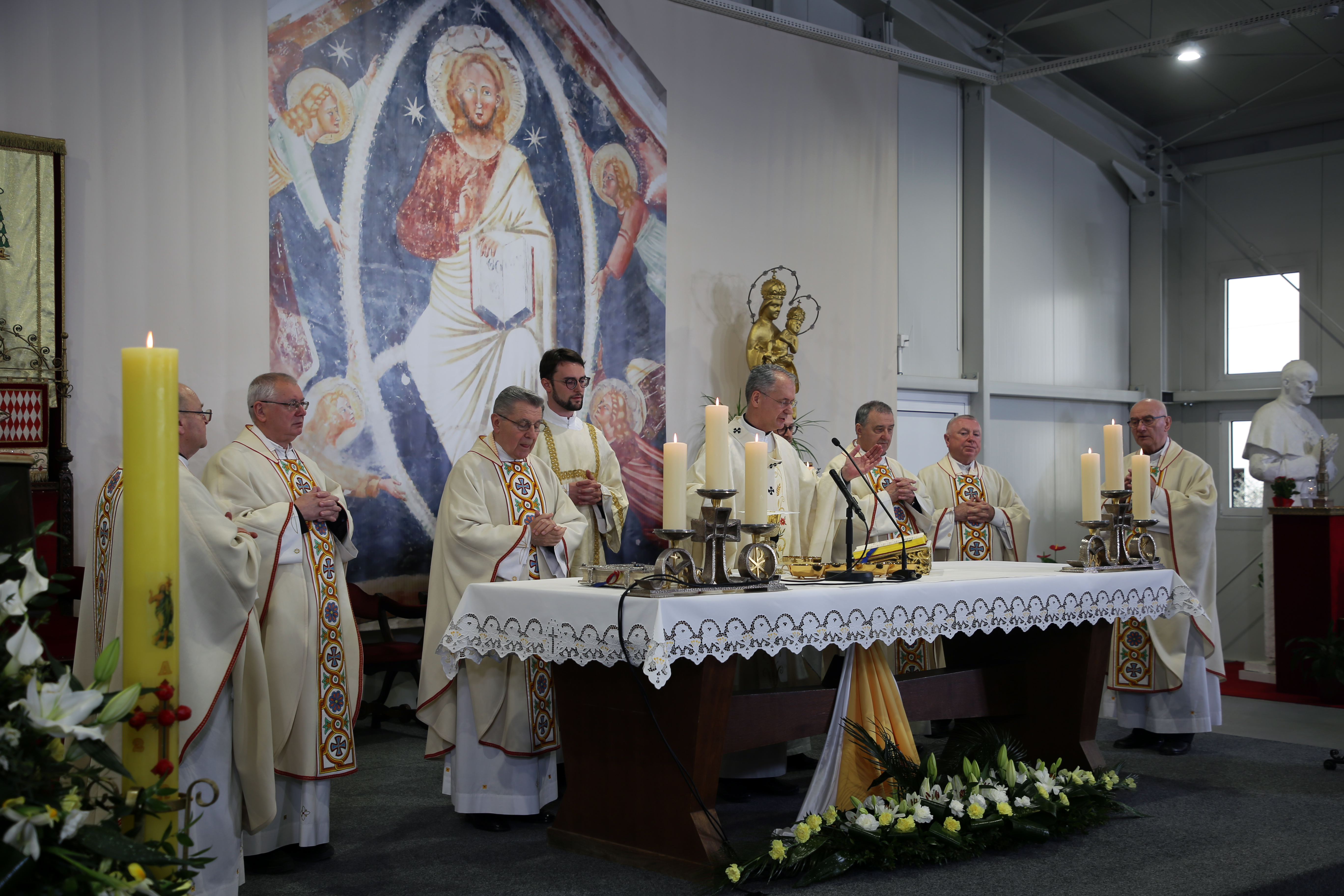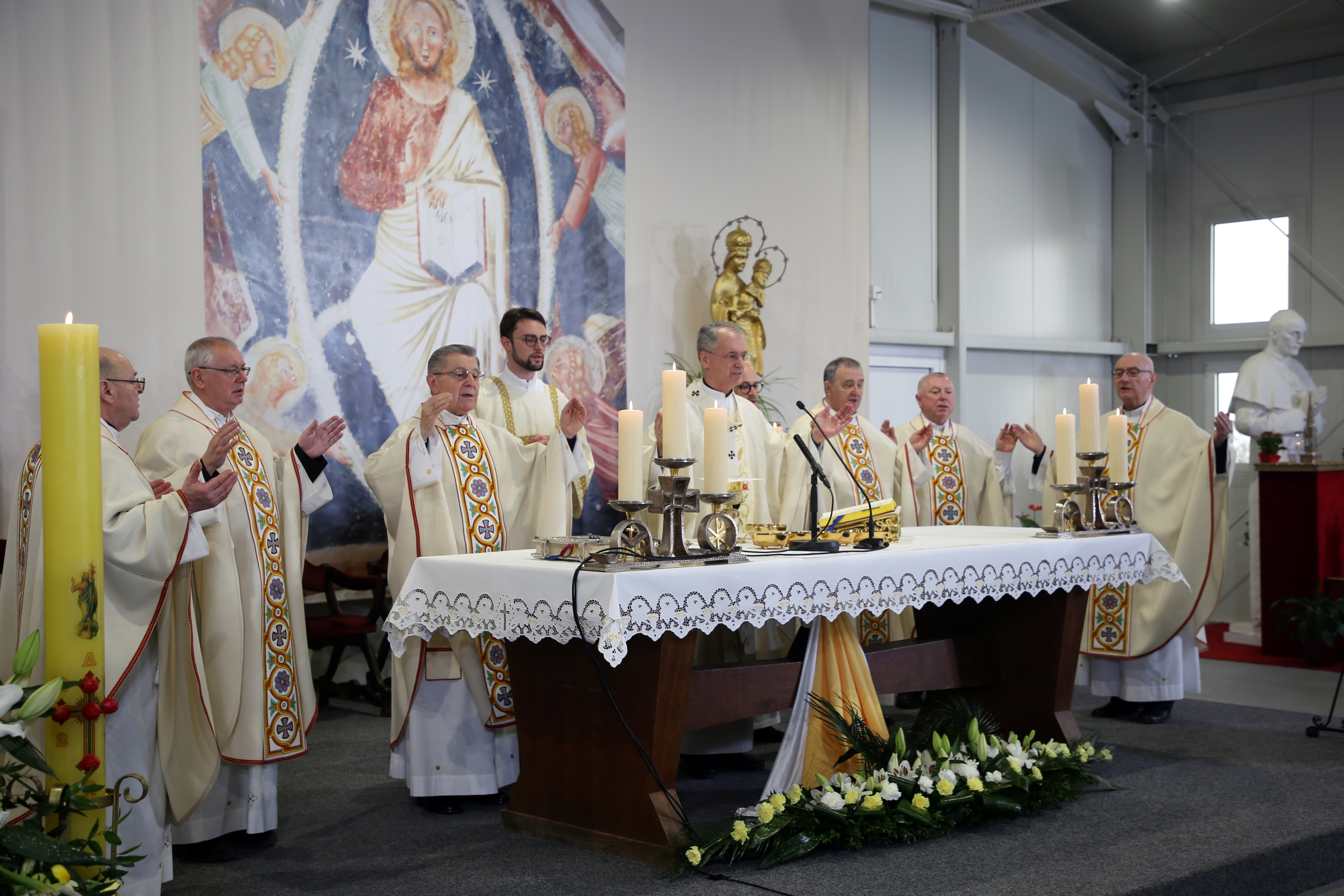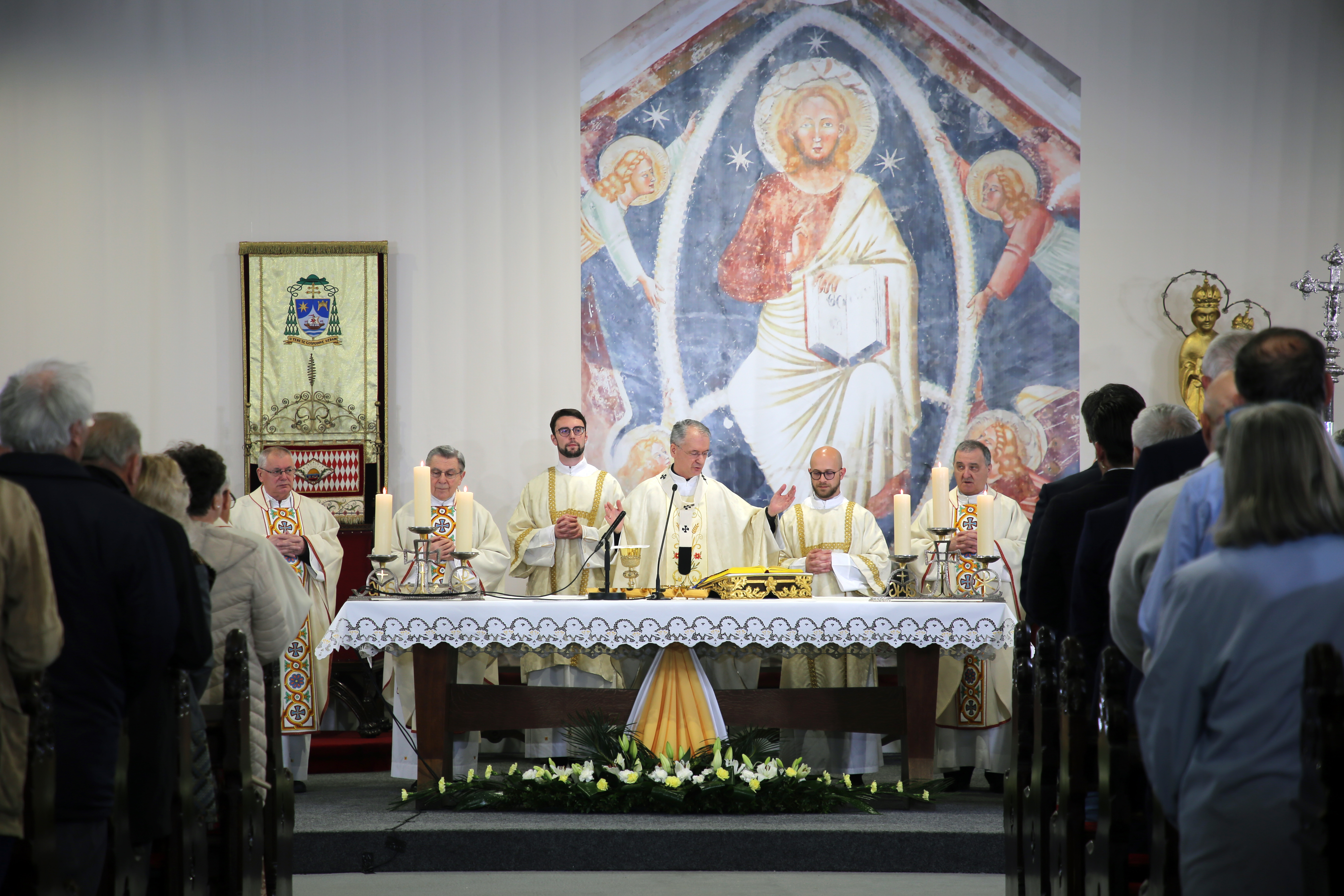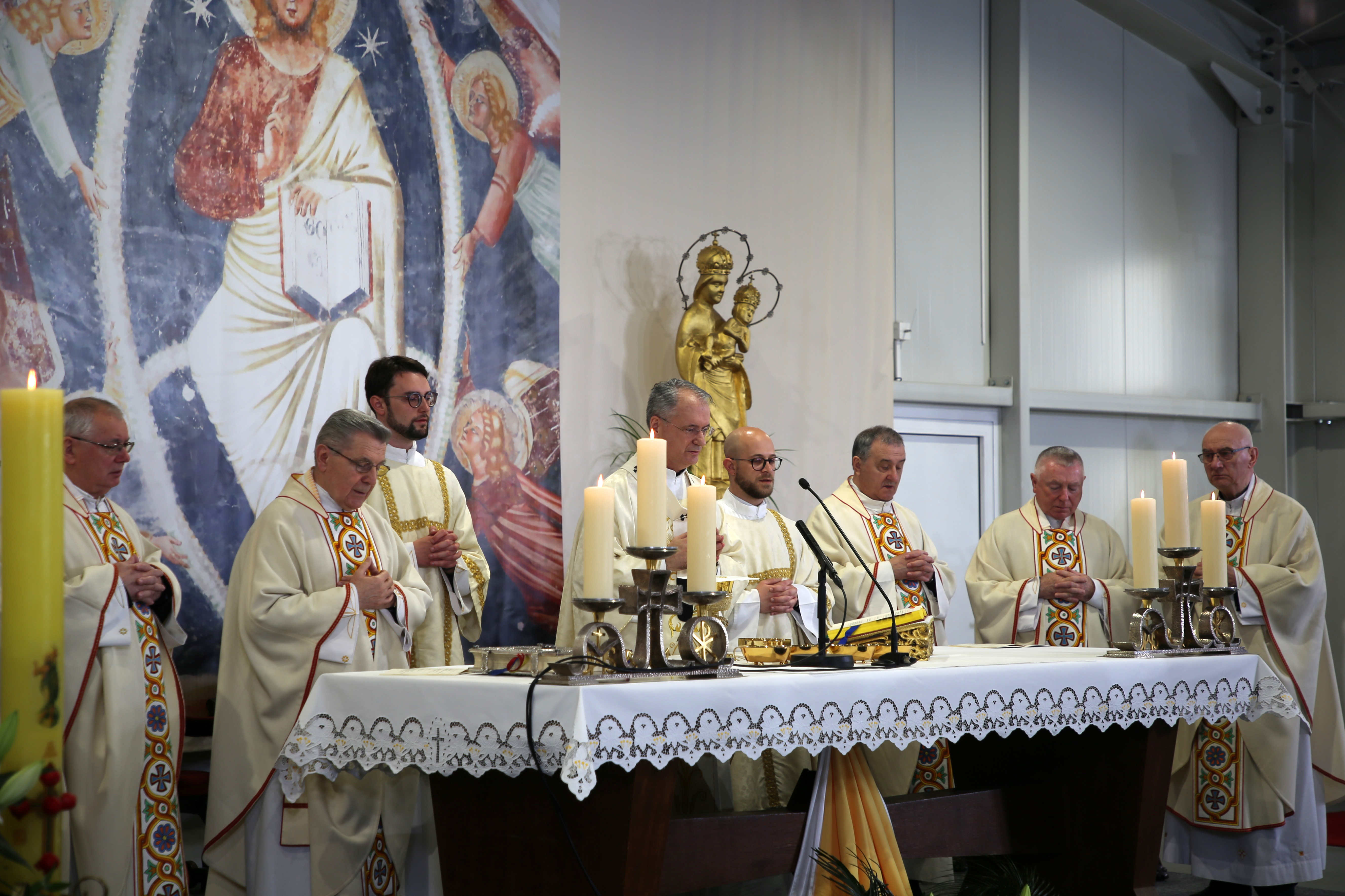 Na Nedjelju Uskrsnuća Gospodnjega, 31. ožujka 2024. godine, svečano euharistijsko slavlje u Bogoslužnom prostoru bl. Alojzija Stepinca predvodio je zagrebački nadbiskup mons. Dražen Kutleša, u koncelebraciji s kanonicima Prvostolnog kaptola zagrebačkog: mons. Stjepanom Večkovićem, mons. Stjepanom Kožulom, mons. Ivanom Hrenom, mons. Ivanom Miklenićem, mons. Josipom Balobanom, mons. Jurjem Bateljom, mons. Zlatkom Korenom, preč. Alojzijem Hoblajem, prebendarom Prvostolne crkve zagrebačke preč. Denisom Barićem, pročelnikom Centra za promicanje socijalnog nauka Crkve HBK mons. Stjepanom Balobanom, rektorom Nadbiskupskog bogoslovnog sjemeništa preč. Željkom Faltakom i nadbiskupskim tajnikom vlč. Andrijom Miličevićem.