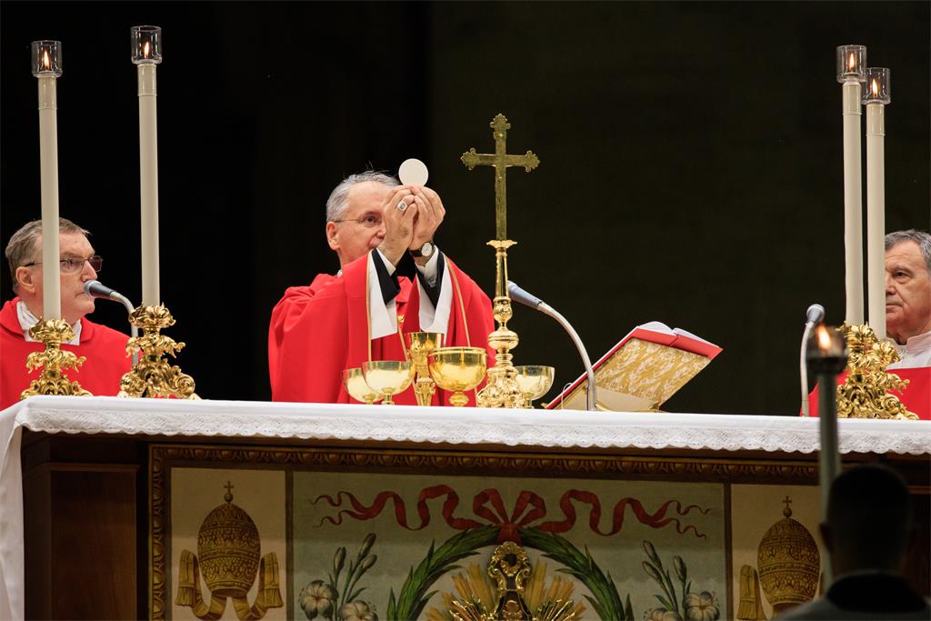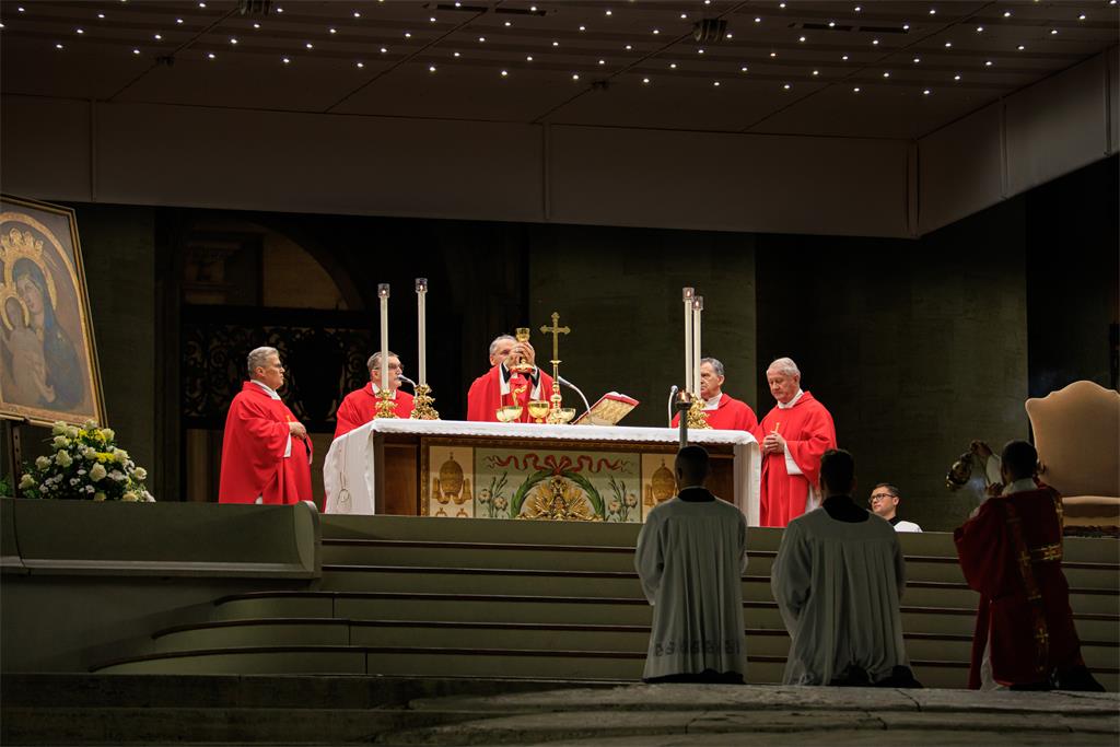 Uslijedilo je misno slavlje koje je predvodio zagrebački nadbiskup Dražen Kutleša, predsjednik Hrvatske biskupske konferencije, uz koncelebraciju kardinala Josipa Bozanića i okupljenih hrvatskih biskupa. U homiliji je Nadbiskup istaknuo da se ovo nacionalno hodočašće održava u godini obilježavanja 1100. obljetnice utemeljenja Hrvatskoga Kraljevstva i Splitskih crkvenih sabora, događaja koji su oblikovali crkvenu i nacionalnu povijest hrvatskoga naroda.