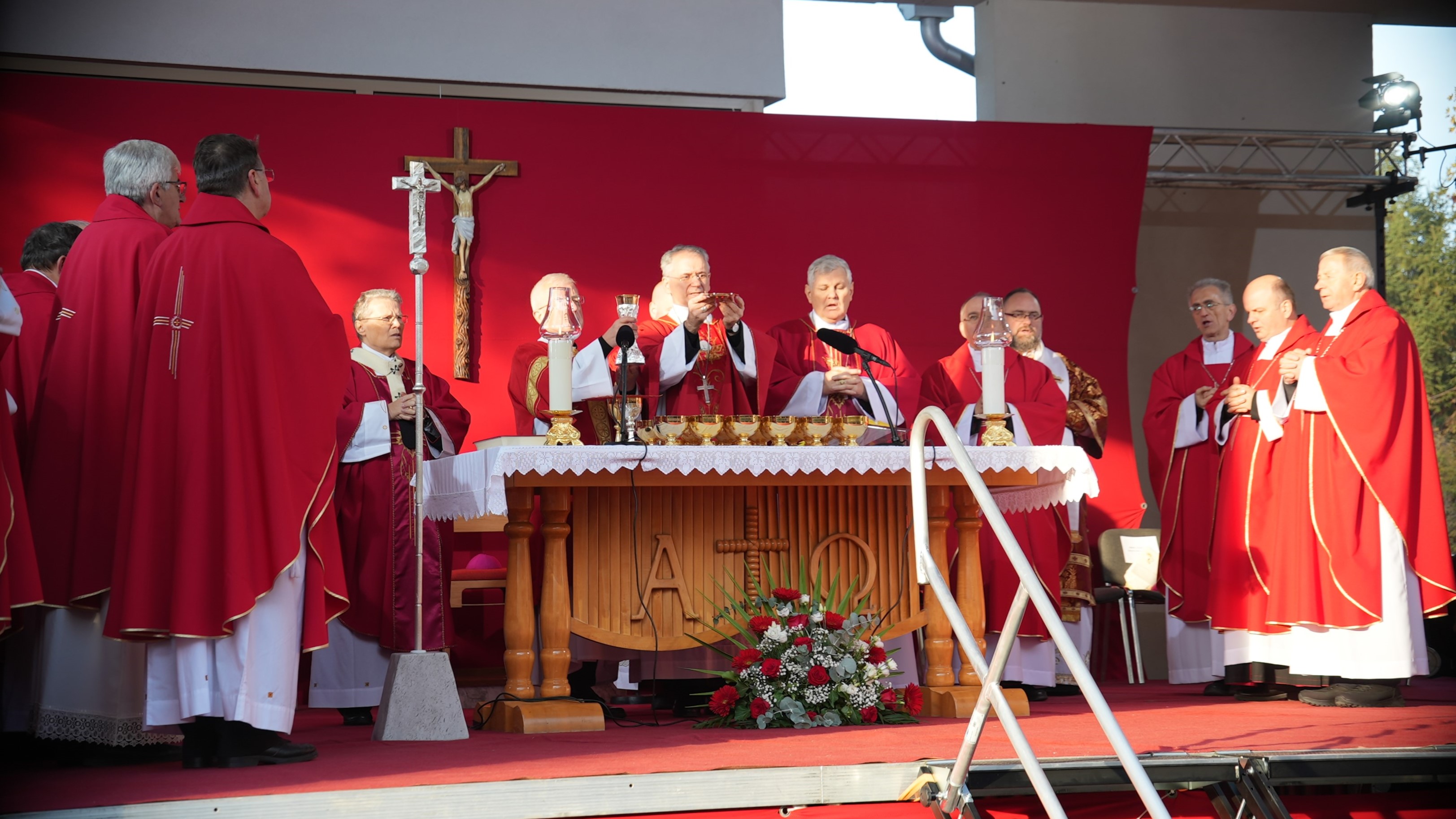 Na misnom slavlju koncelebrirali su nadbiskup metropolit đakovačko-osječki Đuro Hranić, biskup sisački Vlado Košić, biskup bjelovarsko-križevački Vjekoslav Huzjak, biskup varaždinski Bože Radoš, biskup porečko-pulski Ivan Štironja, biskup požeški Ivo Martinović, biskup srijemski Fabijan Svalina, biskup banjolučki Željko Majić, vladika križevački Milan Stipić, pomoćni biskupi zagrebački Mijo Gorski i Ivan Šaško te pomoćni biskup đakovačko-osječki Ivan Ćurić, tajnik Apostolske nuncijature u RH Alvaro Ernesto Izurieta Y Sea, generalni tajnik HBK Krunoslav Novak, rektor Hrvatskog katoličkog sveučilišta Željko Tanjić, provincijalni ministar Hrvatske kapucinske provincije sv. Leopolda Mandića fra Anto Barišić, OFMCap, provincijal dominikanaca fr. Tomislav Kraljević, provincijal Hrvatske salezijanske provincije don Milan Ivančević, generalni vikar Srijemske biskupije Josip Ivešić, vukovarski gvardijan fra Tonio Vučemilović te brojni okupljeni svećenici.
