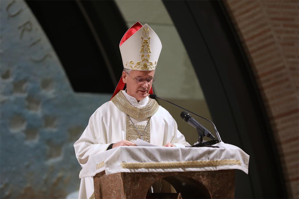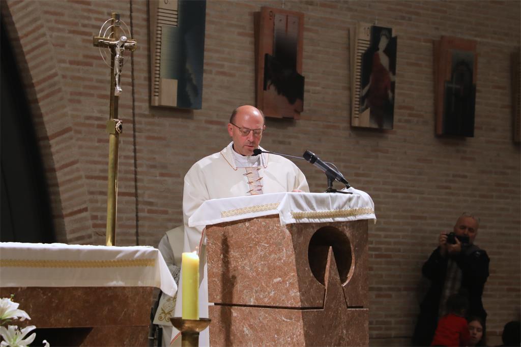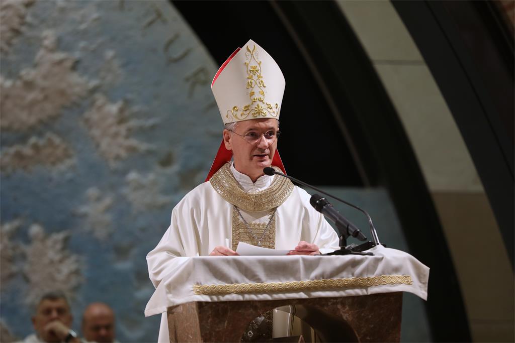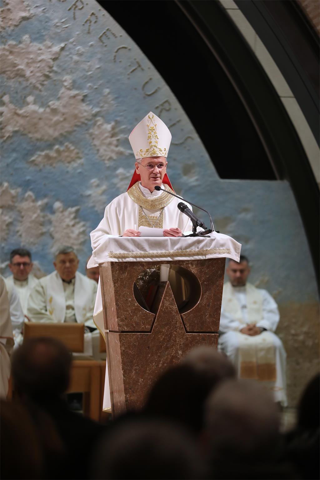 "Draga braćo i sestre, pedeset godina vaše župe znak je da Bog ispunja svoja obećanja. On ne zaboravlja one koji mu ostaju vjerni. Ovaj jubilej neka bude trenutak zahvalnosti i obnovljenog misijskog zanosa. Riječi uklesane u kenotaf u ovoj crkvi poručuju nam da ne klonemo kad je teško držati stijeg čestitosti, poštenja i vjere, nego da se sjetimo žrtve koju su podnijeli naši branitelji i toliki Bogu vjerni naši sinovi i kćeri. Bez žrtve se ne može postići ništa vrijedno ni trajno", kazao je nadbiskup Kutleša te zaključio: "Neka ova zajednica vjernika putuje u budućnost i dalje zakriljena Duhom Svetim, da on u njoj rađa neustrašivu vjeru, djelotvornu ljubav i postojanu nadu. Neka vaše obitelji budu male Crkve pune Duha, a cijela župa ognjište vjere za ovaj grad. Dok naša sjećanja postaju uspomena, neka budućnost postane obećanje da će Duh Sveti i dalje govoriti kroz vas, klicati u vama i djelovati po vama. Molimo svi istim žarom: 'Da mihi animas, caetera tolle!' Daj nam, Gospodine, duše, i sve drugo uzmi jer duše su tvoje, a u tebi je naša radost, naše poslanje i naša nagrada."