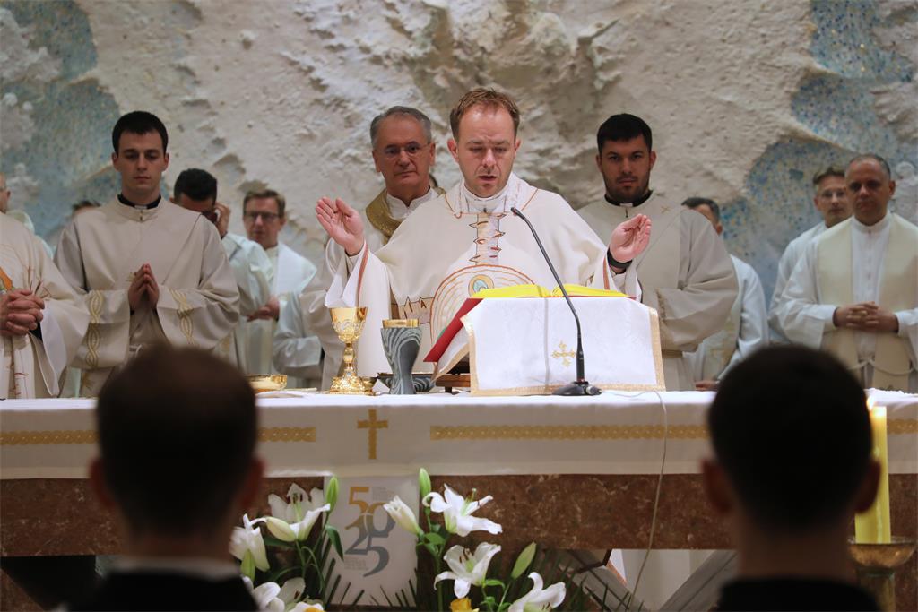 "Pedeset godina za vama svjedoči koliko se dobra rodilo: u pastoralu mladih, u radu s obiteljima, u djelima kršćanske ljubavi, u školama i u duhovnim zvanjima. Rad s mladima u duhu karizme don Bosca i njegovih salezijanaca, dar je ne samo vašoj župi nego puno šire jer mladi koji ovdje dolaze studenti su iz raznih krajeva. Duh Sveti vas poziva da s ovoga mjesta krenete na periferije svijeta: među osamljene, ranjene, obeshrabrene; među one koji su možda izgubili povjerenje u Crkvu, ali u srcu nose neugaslu čežnju za Bogom", kazao je mons. Kutleša te o ljubavi prema dušama rekao: "Spasenje duša ne počinje riječima, nego suosjećanjem i ljubavlju, konkretnom blizinom. Kad čovjek osjeti da je voljen, otvara se milosti. Zato Duh Sveti Crkvu poučava jeziku ljubavi. Sveti Ivan Bosco znao je da će onaj tko zna da je ljubljen učiniti sve da ne izgubi tu ljubav. Tako se duše ne spašavaju silom nego blagošću i svjedočanstvom, podnošenjem u ljubavi i prinošenjem nevidljivih žrtava na oltaru vlastitoga srca."
