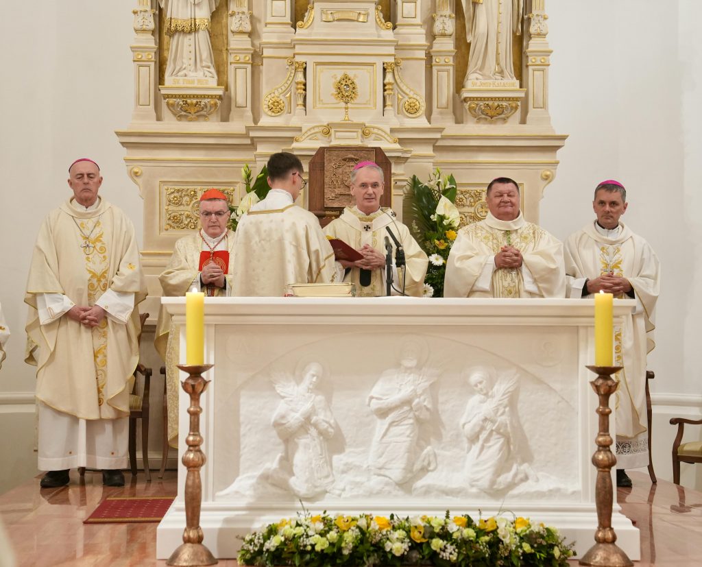Svečano euharistijsko slavlje u katedrali svete Terezije Avilske u Bjelovaru predvodio je predsjednik Hrvatske biskupske konferencije zagrebački nadbiskup metropolit Dražen Kutleša. Na misi su, uz biskupa domaćina Vjekoslava Huzjaka, koncelebrirali i umirovljeni zagrebački nadbiskup kardinal Josip Bozanić, apostolski nuncij u RH nadbiskup Giorgio Lingua, predsjednik Slovenske biskupske konferencije novomeški biskup Andrej Saje, nadbiskupi đakovačko-osječki Đuro Hranić, riječki Mate Uzinić, splitsko-makarski Zdenko Križić i zadarski Milan Zgrablić, mnogi biskupi iz Hrvatske i Vojvodine te mnoštvo svećenika iz Hrvatske i inozemstva.