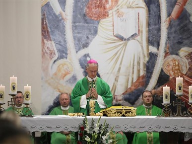 Zagrebački nadbiskup mons. Dražen Kutleša predvodio je u utorak 10. rujna misno slavlje u Bogoslužnom prostoru bl. Alojzija Stepinca prigodom kojega je dodijelio trajne mandate vjeroučiteljima, vjeroučiteljicama i odgojiteljicama u vjeri. Na misnom slavlju koncelebrirali su preč. Marko Kovač, biskupski vikar za pastoral i kancelar Nadbiskupskog duhovnog stola; preč. Denis Barić, prebendar Prvostolne crkve zagrebačke i profesor na KBF-u; preč. Božidar Cindori, župnik Župe bl. Alojzija Stepinca, Bestovje-Novaki-Rakitje; vlč. Vjekoslav Meštrić, župnik Župe Uznesenja BDM, Zagreb-Stenjevec; te preč. Nenad Malović, profesor na KBF-u.
