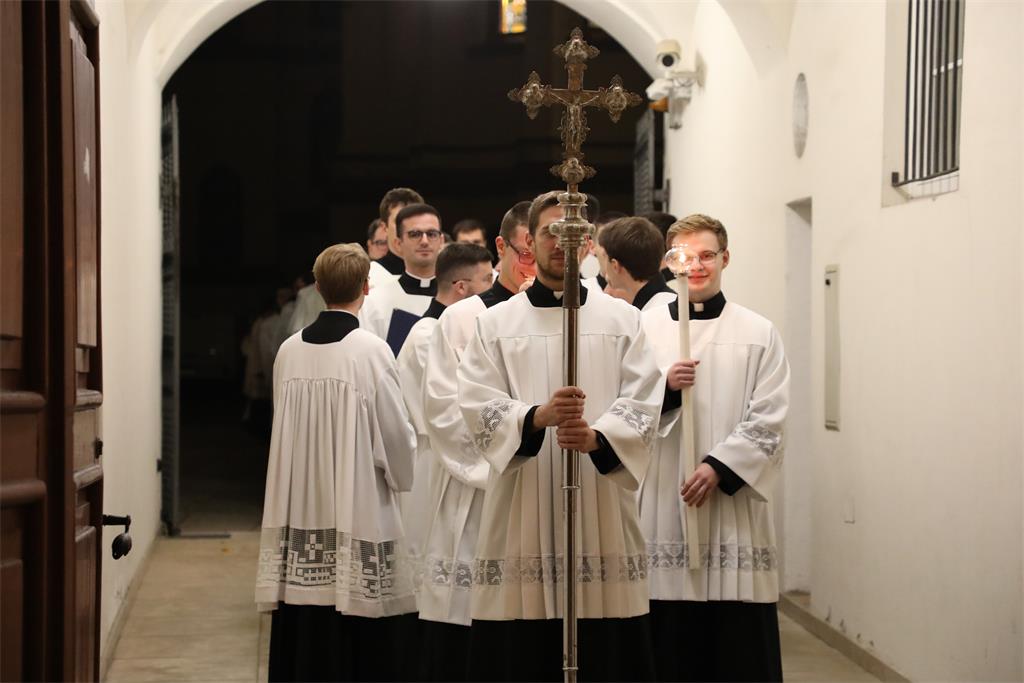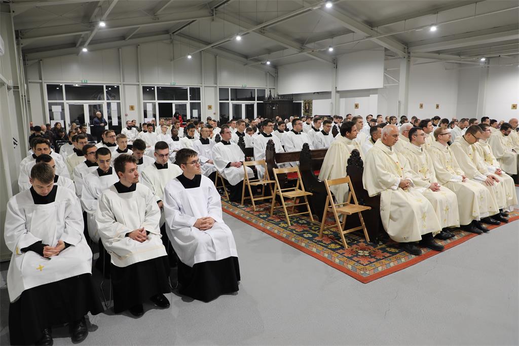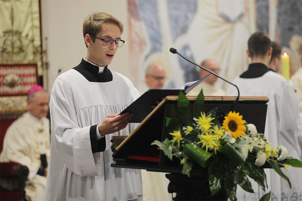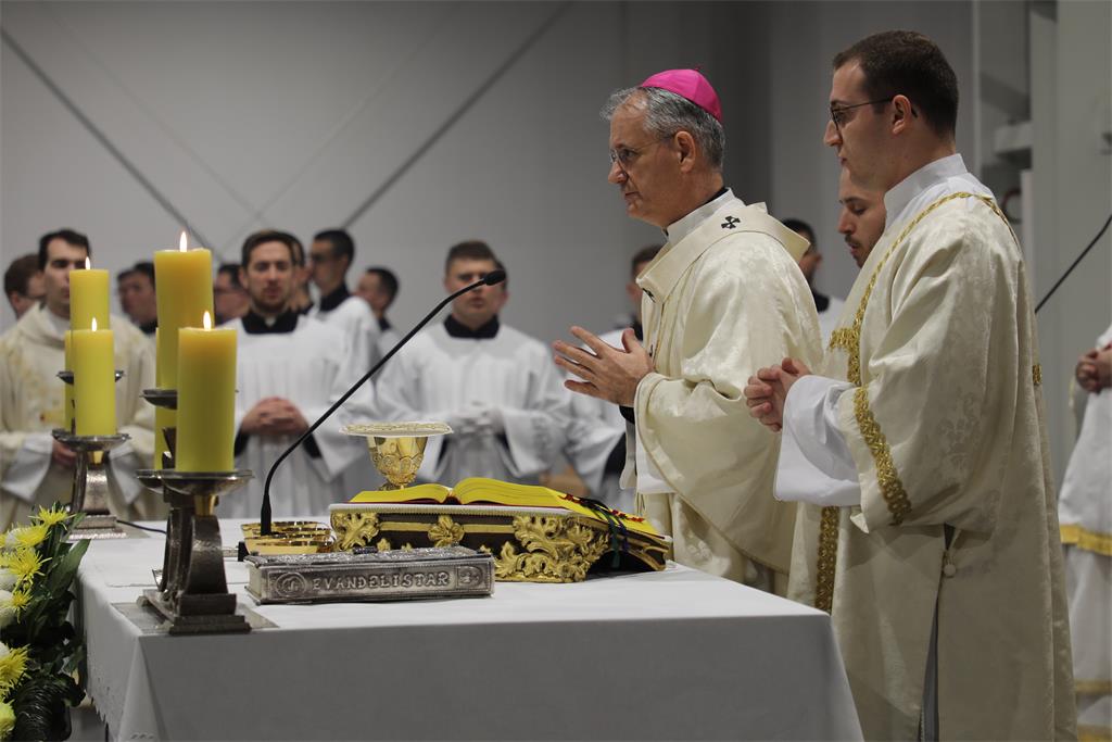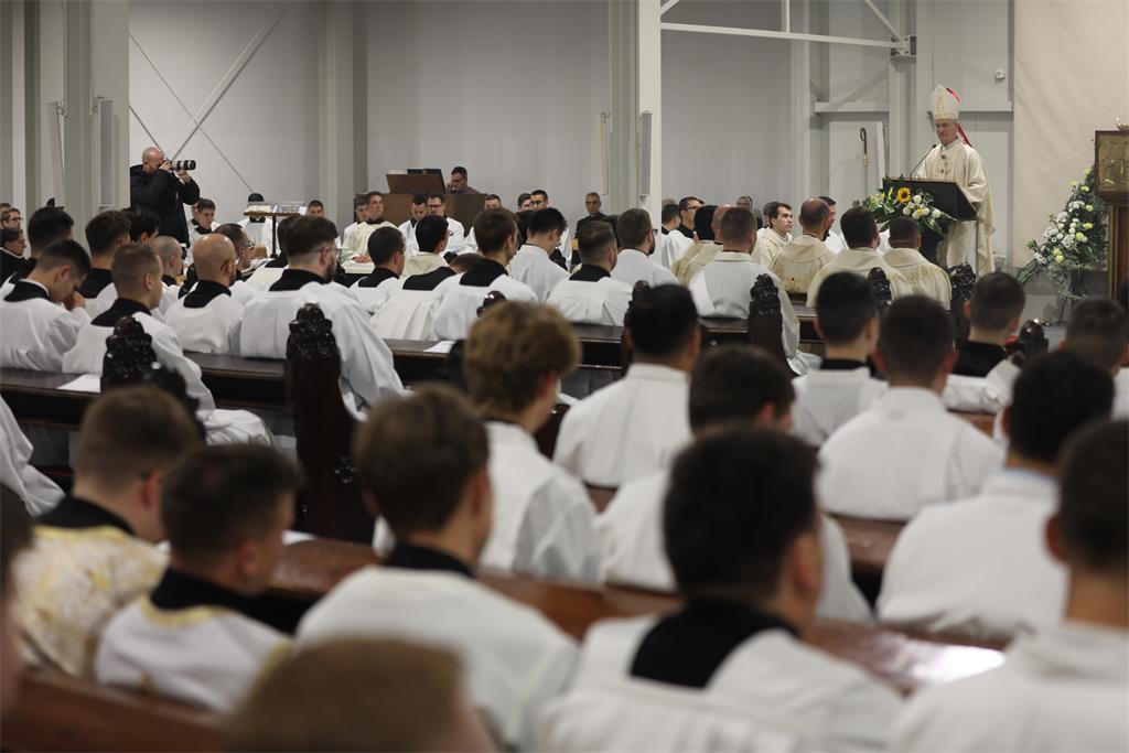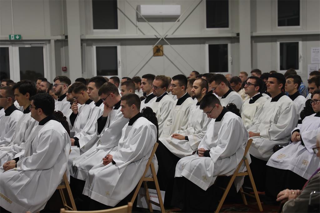 Nadbiskup Kutleša istaknuo je kako prisutnost bogoslova ovom slavlju daje poseban značaj. "Vi ste na poseban način dio žive građevine Crkve jer će neki od vas po sakramentu svetoga Reda „stajati uz bok s biskupima“ u kojima je „posred vjernika prisutan Gospodin Isus Krist, vrhovni svećenik“ (