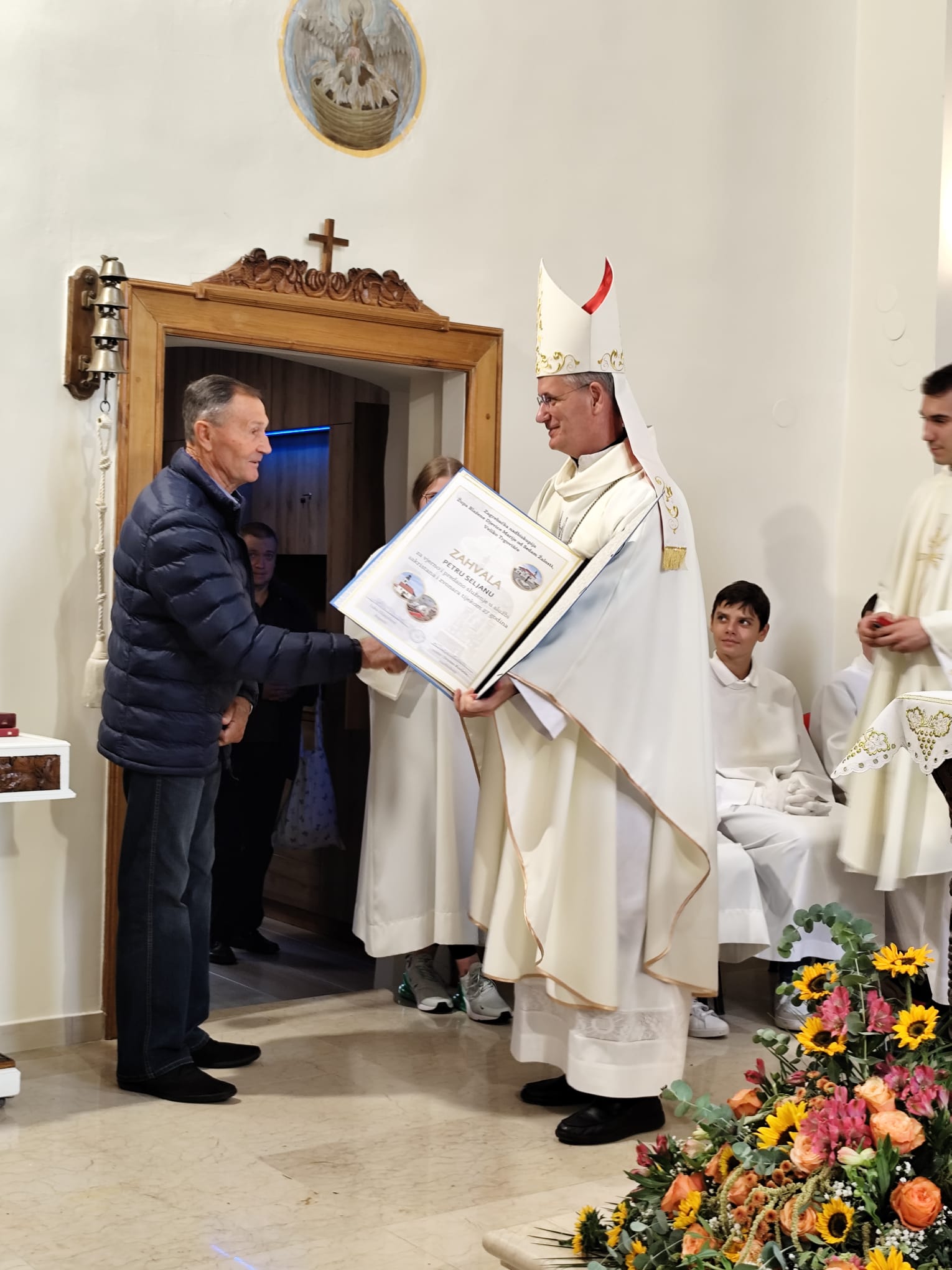 Na kraju misnog slavlja mons. Kutleša predao je zahvalu gospodinu Petru Seljanu, koji je 27 godina vršio službu zvonara i sakristana u župi Veliko Trgovišće i tako je nesebično pomagao trojici župnika. Župljani su mu također zahvalili prigodnim darovima.