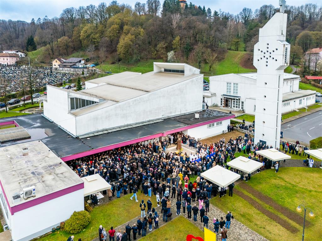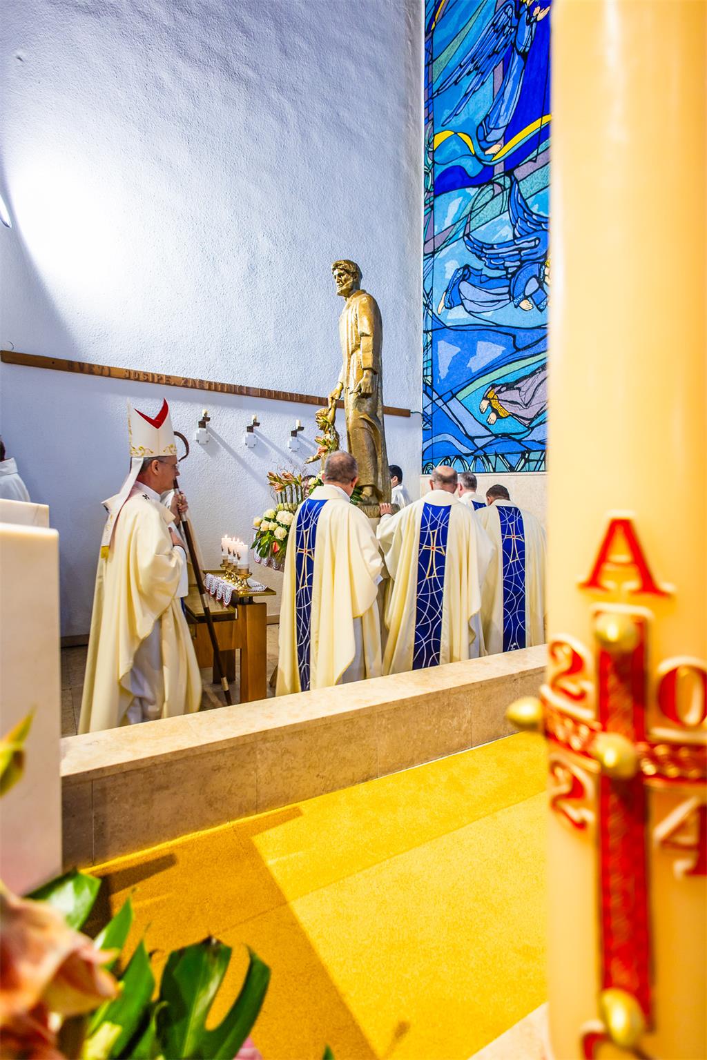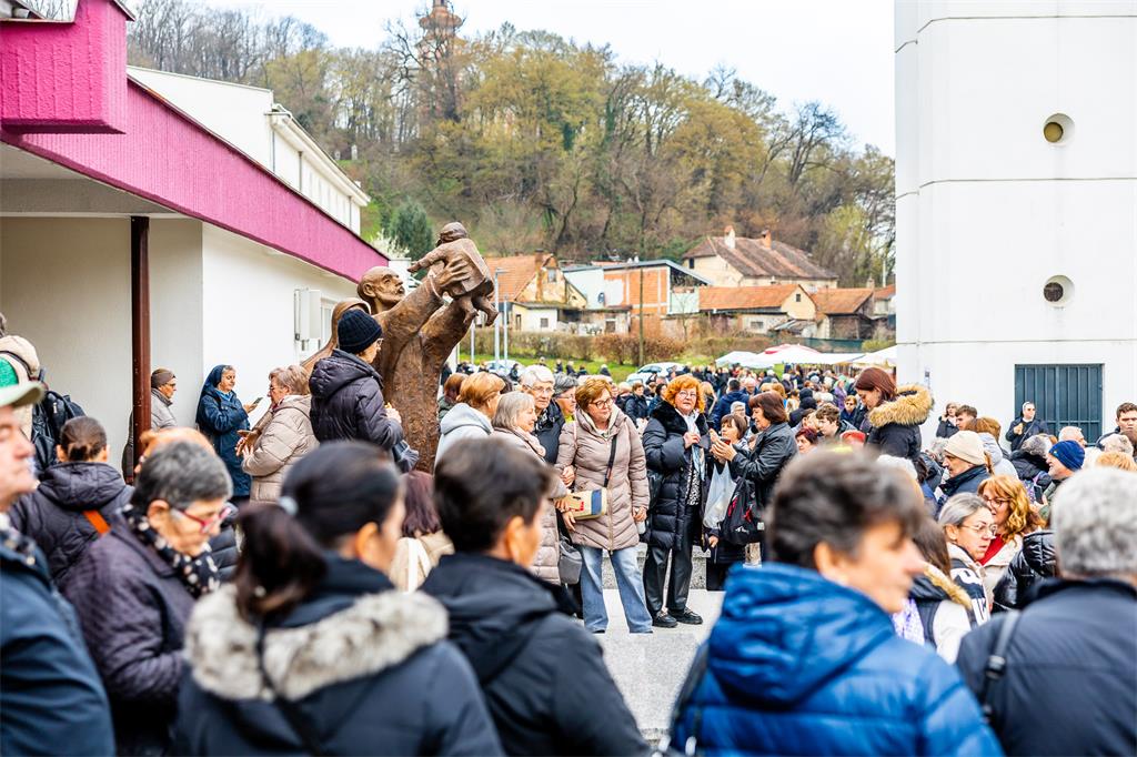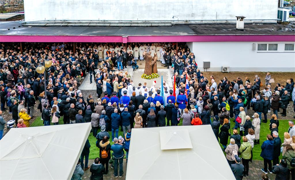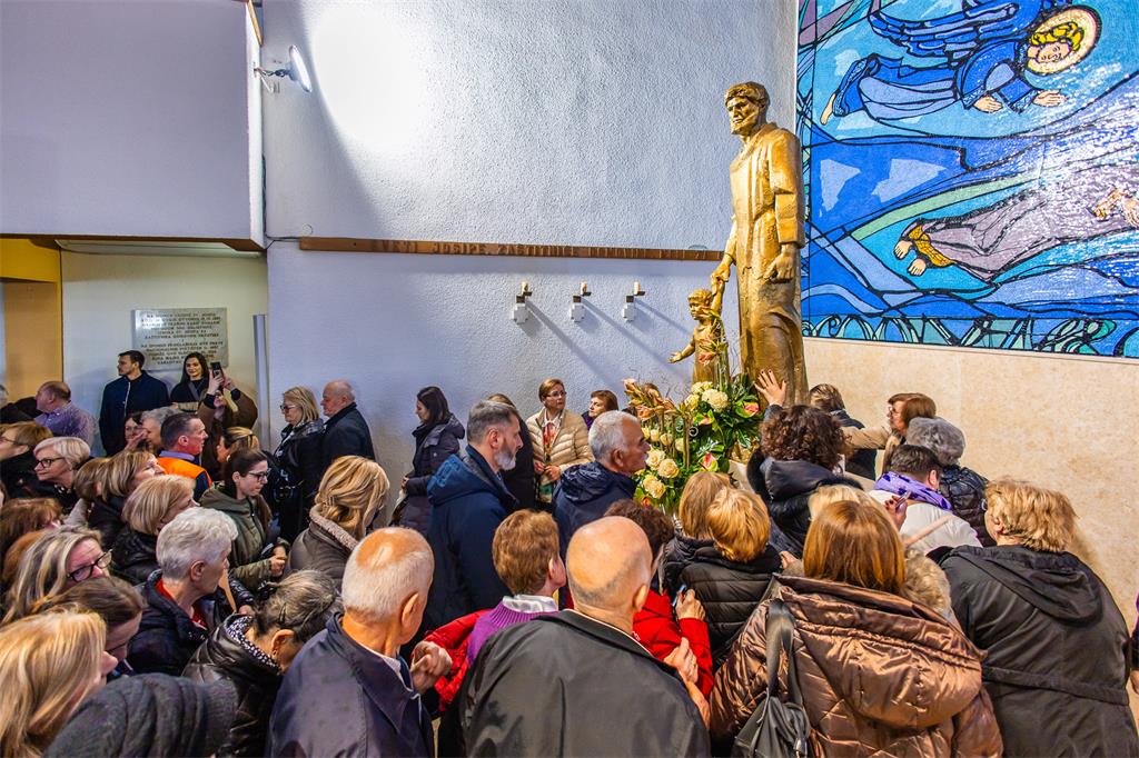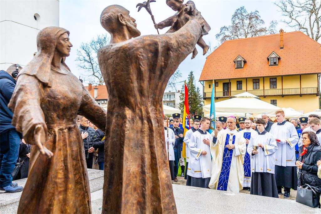 Rektor Svetište mons. Sente prije blagoslova pozdravio je sve okupljene te istaknuo kako je zahvalan svima koji su molitvom, prisutnošću i skrovitim darovima pomogli izradu kipa i mozaika. Podijelio je s okupljenima svoj doživljaj umjetnina zaključivši: "Bog silazi s nebeskih visina i dariva nam svoga Sina Marijinom vjernošću, uz svetoga Josipa pomoć, da bi nas sve u raju učinio dionicima vječne radosti." Uslijedio je blagoslov kipa Svete Obitelji i mozaika te misno slavlje.