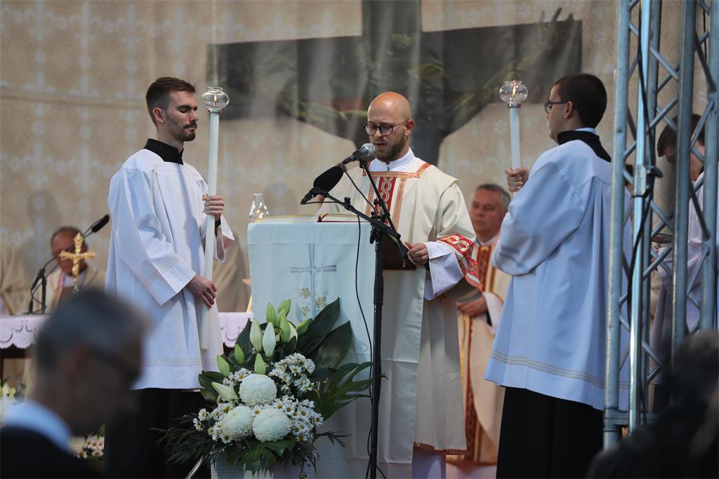 Dobrodošlicu je zaželio nunciju Lingui i nadbiskupu Kutleši rekavši: "Molim vas da započnete svetu misu i našim molitvama povežete Crkvu, zajednicu vjernika koji su već u raju; zajednicu vjernika koji se pripremaju kroz čistilište da gledaju ljepotu lica Njegova, i ovu našu borbenu Crkvu, koja se bori protiv napasti grijeha, da se svi okupimo u domu Očevu."