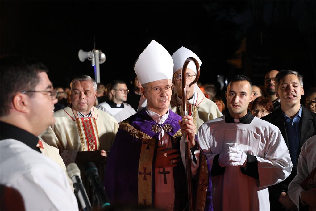 "Oko nas tisuće svijeća treperi molitvama koje se uzdižu prema nebu. Svaka kap voska svjedoči prolaznost, ali svaki plamen priziva vječnost. Svaka svijeća nosi jedno ime, jedno lice, jednu priču utkanu u naš život. Koliko li je samo u tim svjetlima neizrečenih riječi, propuštenih zagrljaja, praštanja koja nismo imali priliku izreći! Naša prisutnost ovdje svjedoči o ljubavi koja ne umire, a svjetlo vjere u srcu poručuje kako smrt nema posljednju riječ nad čovjekom", istaknuo je Nadbiskup.