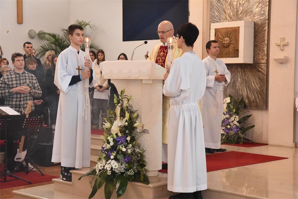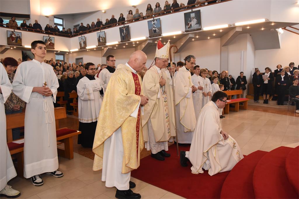 Mladi župe nadbiskupu Kutleši uručili su cvijeće uz personalizirani križ od kaljenog stakla, djelo akademskog slikara Mirka Zubaka, na kojem stoji pisano nadbiskupovo biskupsko geslo „U tebe se, Gospodine, uzdam!“.