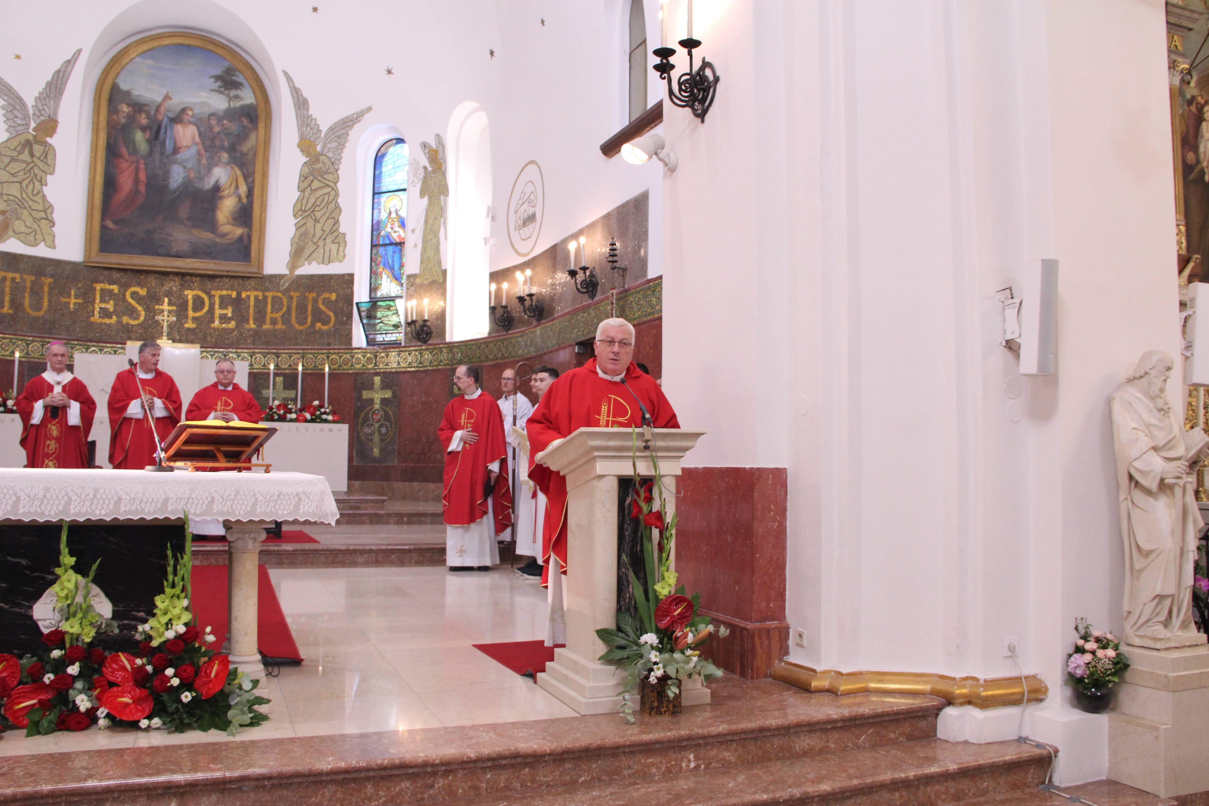 U homiliji nadbiskup Kutleša istaknuo je kako svetog Petra i Pavla veže "ispovijedanje vjere u Isusa Krista, koju su svaki na svoj način zapečatili krvlju za Neronova progonstva u Rimu. Petar je razapet naglavačke jer se smatrao nedostojnim biti raspet kao njegov Učitelj. Taj doživljaj vlastite nedostojnosti Petar je očitovao i kod čudesnog ulova ribe, na početku svoga hoda za Gospodinom, kada je izrekao riječi: „Idi od mene! Grešan sam čovjek, Gospodine“ (Lk 5, 8). Čini se da je ta poniznost bila oznaka Petrova karaktera, no između jednog i drugog događaja, početka nasljedovanja i smrti zbog nasljedovanja, Petar je prošao put vjere na kojemu je posrtao i rastao."