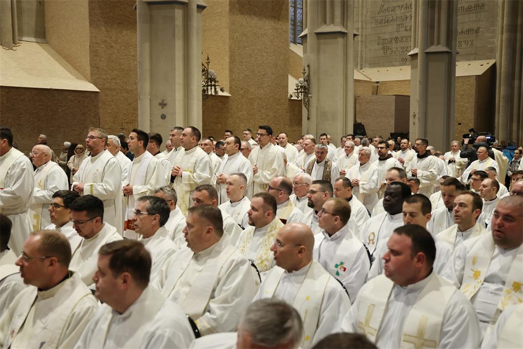 , pomoćnim biskupima mons. Ivanom Šaškom, mons. Mijom Gorskim, mons. Markom Kovačem i mons. Vladom Razumom, redovničkim provincijalima, kanonicima Prvostolnog kaptola zagrebačkog i prebendarima Prvostolne crkve zagrebačke, svećenici Zagrebačke nadbiskupije obnovili su u ovom euharistijskom slavlju svećenička obećanja dana na ređenju te su svjedočili zajedništvu Crkve.