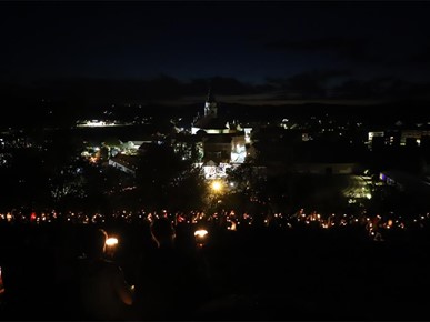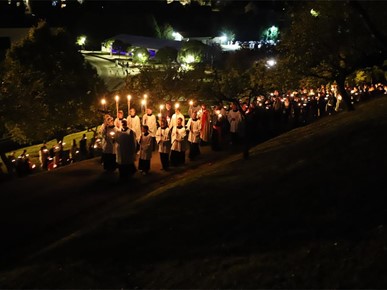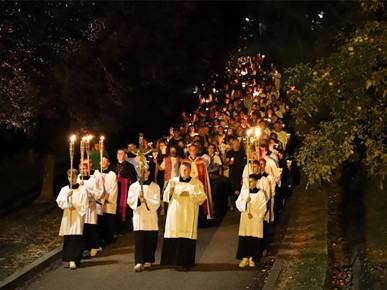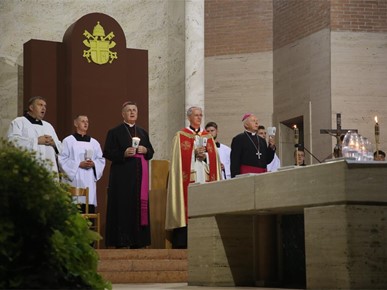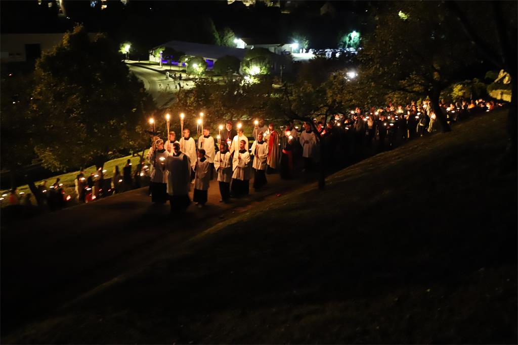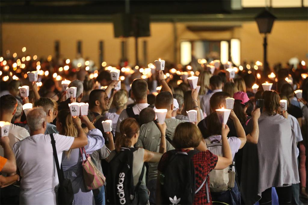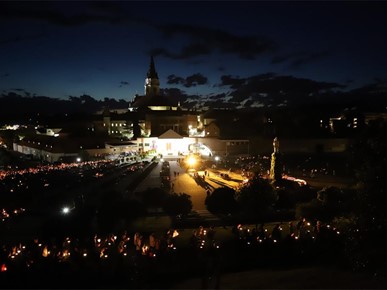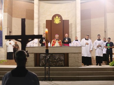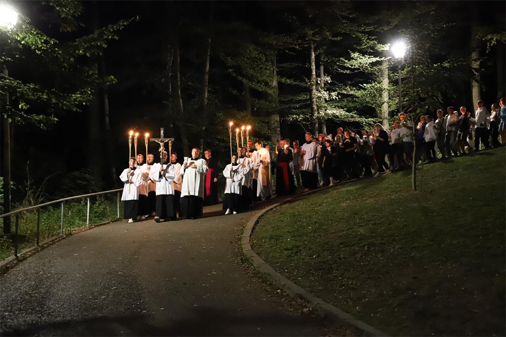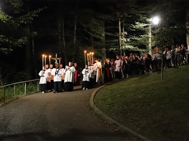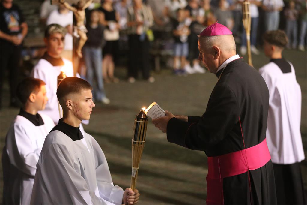 Nakon dolaska hodočasnika pješaka u Hrvatsko nacionalno svetište u Mariji Bistrici u subotu 7. rujna večernji program nastavljen je Službom svjetla na bistričkoj kalvariji koju je predvodio zagrebački nadbiskup mons. Dražen Kutleša.