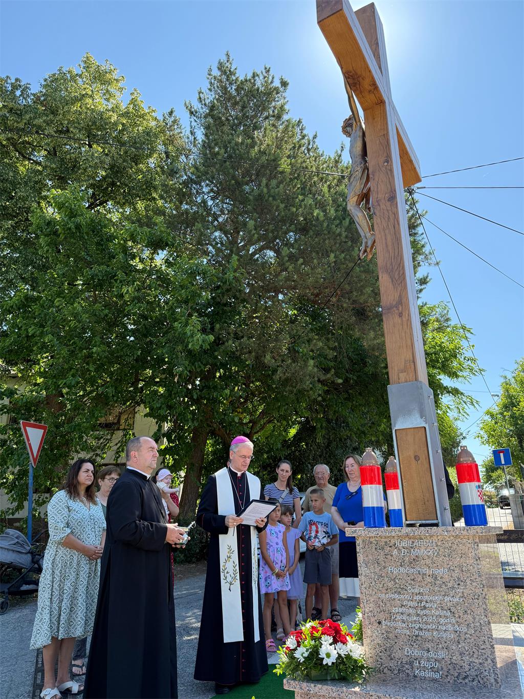 Križ, koji je postavljen na inicijativu župnika vlč. Josipa Senjaka uz pomoć župljana, nosi geslo "Hodočasnici nade" koji je podignut upravo u jubilejskoj godini, kao poziv vjernicima i putnicima da se zaustave i pomole. Stražnja strana križa nosi stihove iz pjesme "Golgota" Silvija Strahimira Kranjčevića, koji pozivaju na vjeru, nadu i molitvu za sve, a posebno za one koji su izgubljeni i obeshrabreni. Križ ne predstavlja samo kamen i drvo, već je i poziv na povratak Bogu i pouzdanje u Njegovo milosrđe. Ujedno je i vidljiv znak vjere, pripadnosti i zajedništva ove župne zajednice.