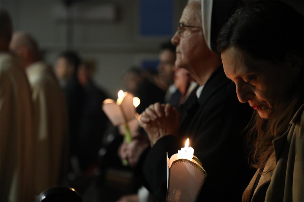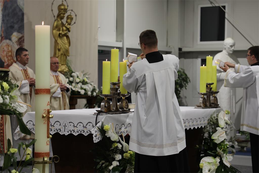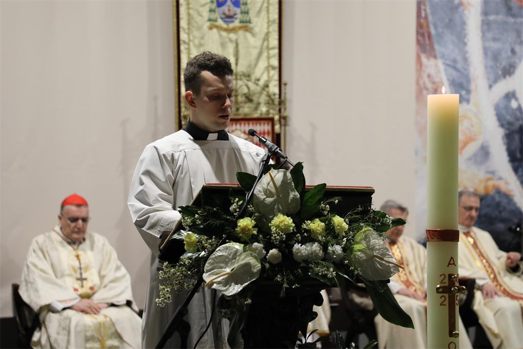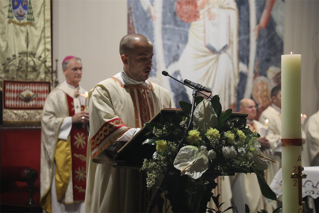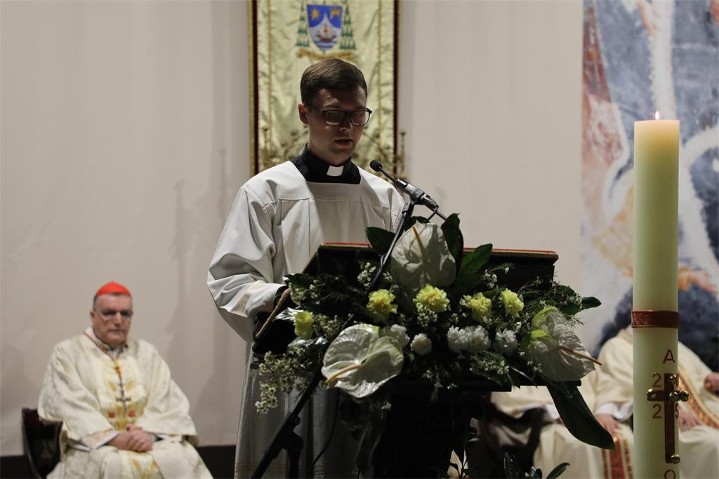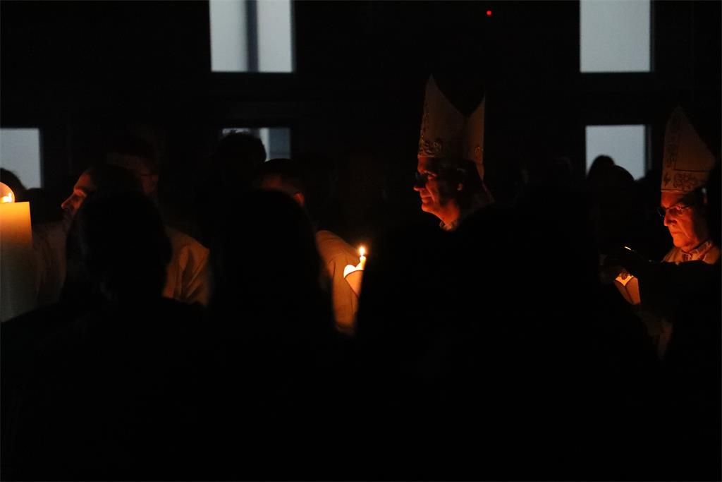Vazmeno bdjenje započelo je Službom svjetla kojom se uskrsna svijeća - svjetlo Kristovo u procesiji unijela u Bogoslužni prostor. Potom je otpjevan Hvalospjev uskrsnoj svijeći te je uslijedila Služba riječi.