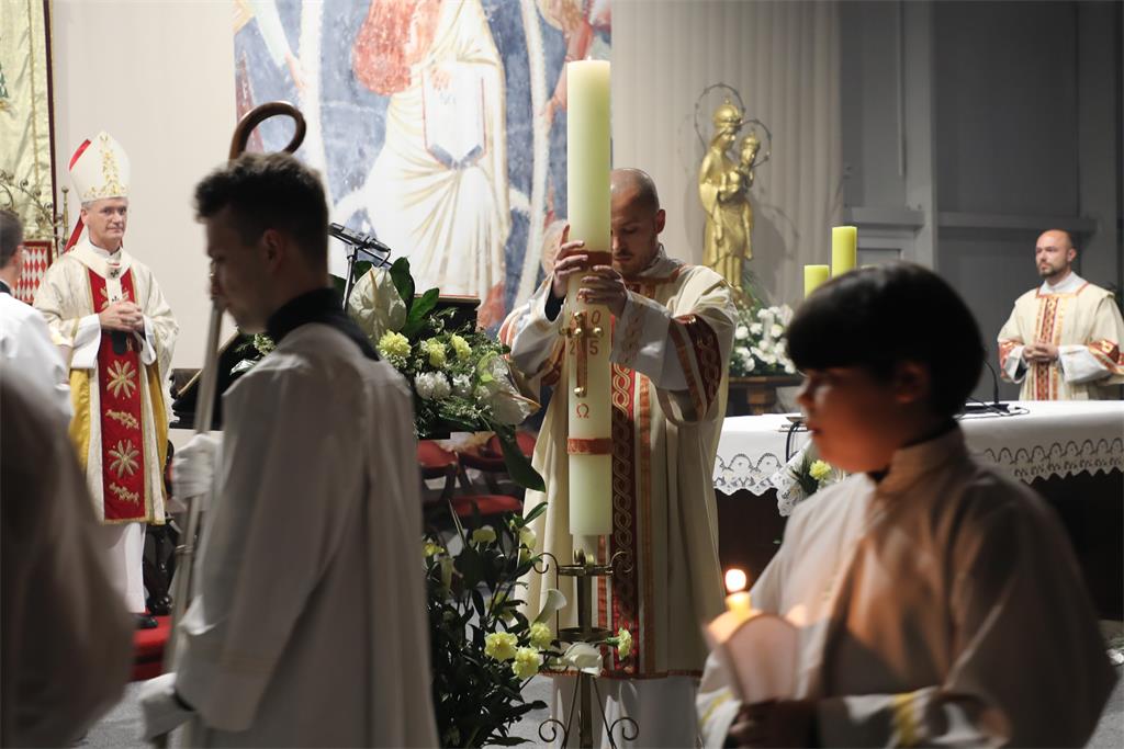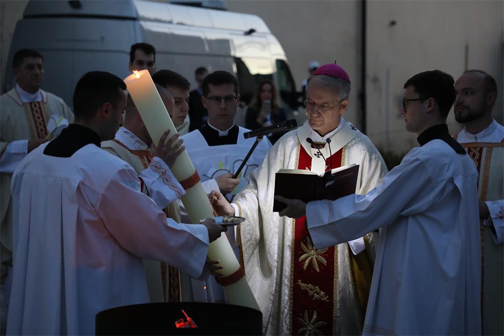 Zagrebački nadbiskup mons. Dražen Kutleša predvodio je Vazmeno bdjenje u svetoj noći Velike subote, 19. travnja, u Bogoslužnom prostoru bl. Alojzija Stepinca u Zagrebu.