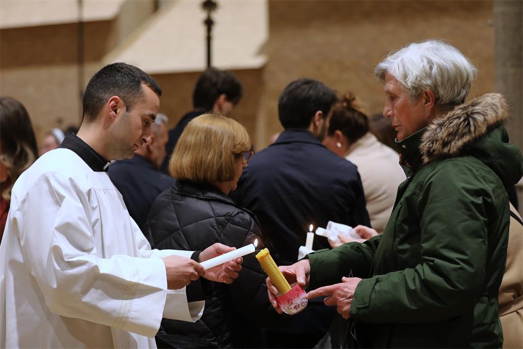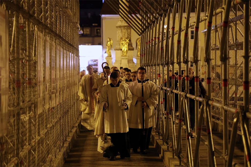 Vazmeno bdjenje započelo je Službom svjetla kojom se uskrsna svijeća - svjetlo Kristovo u procesiji unijela u Zagrebačku prvostolnicu. Potom je otpjevan Hvalospjev uskrsnoj svijeći te je uslijedila Služba riječi.