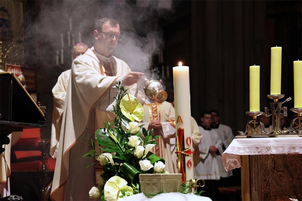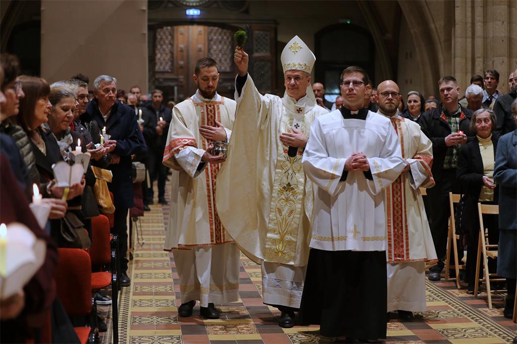 Zagrebački nadbiskup mons. Dražen Kutleša predvodio je Vazmeno bdjenje u svetoj noći Velike subote, 4. travnja 2026. godine, u Zagrebačkoj katedrali, u zajedništvu sa zagrebačkim nadbiskupom u miru kardinalom Josipom Bozanićem, pomoćnim biskupom mons. Markom Kovačem, kanonicima Prvostolnoga kaptola zagrebačkog, prebendarima Prvostolne crkve zagrebačke te nadbiskupskim tajnikom vlč. Domagojem Topićem.