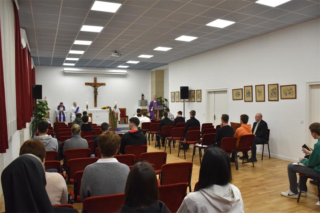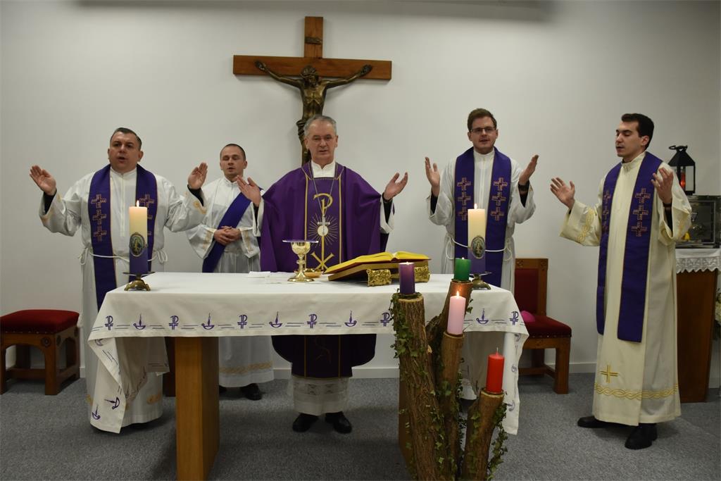 Misno slavlje započelo je u privremenom bogoslužnom prostoru svečane sjemenišne dvorane, a koncelebrirali su rektor sjemeništa preč. Matija Pavlaković, duhovnik sjemeništaraca vlč. Luka Premelč te nadbiskupski tajnik vlč. Domagoj Topić. Đakonsku službu tijekom slavlja vršio je sjemenišni odgojitelj vlč. Ivan Čus.