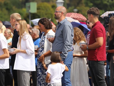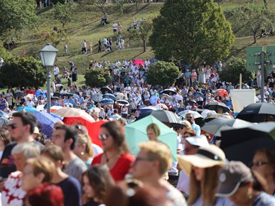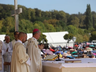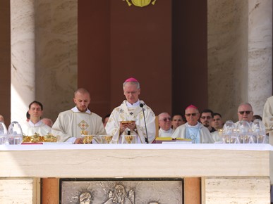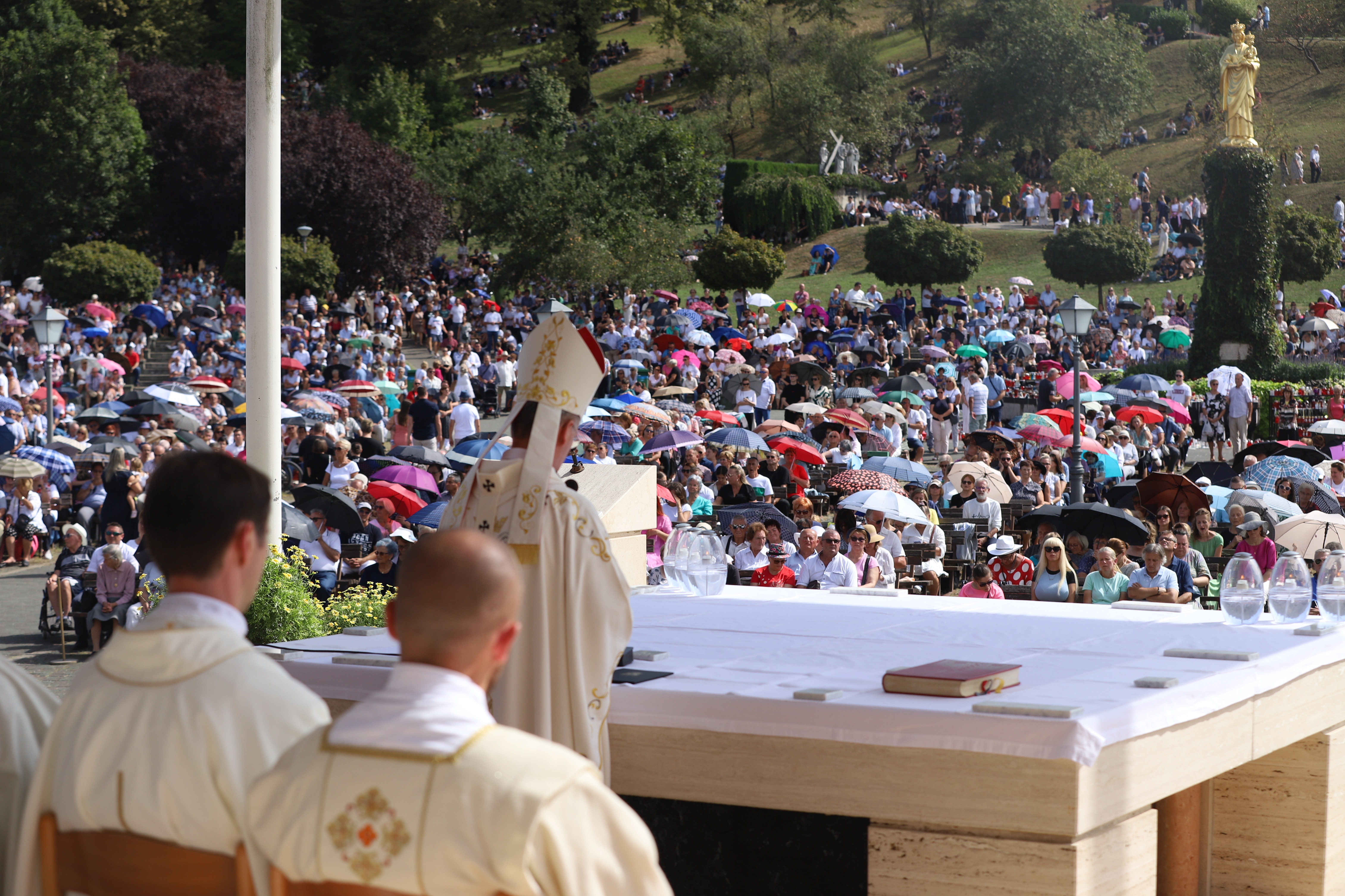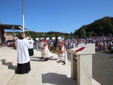Na kraju homilije nadbiskup Kutleša podsjetio je na Nacionalni euharistijski kongres: „Na ovom mjestu prije točno 40 godina održan je i Nacionalni euharistijski kongres kada smo se s ponosom spominjali 13 stoljeća kršćanstva u našem narodu. Isus je, dragi vjernici, dobro vino i punina života. On je sam Život! Nastavimo biti zahvalni za dar koji primamo. Isusove intervencije u naše živote nisu ograničene našim mjerilima. Kad ozdravlja, ozdravlja i dušu i tijelo; kad hrani, hrani i dušu i tijelo; kad prosvjetljuje čini to jasnoćom koja cjelovito zahvaća ljudsku osobu. Blažena Djevica Marija znala je da nitko nije kao Bog. Stoga nam i danas, na ovoj euharistijskoj gozbi, poručuje da s pouzdanjem činimo ono što nam kaže. Ona je bila prva koja je to učinila. Na njoj je prvoj Gospodin pokazao svoju božansku snagu.“
